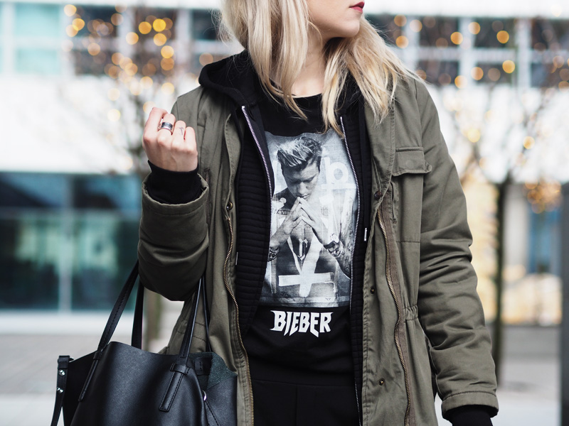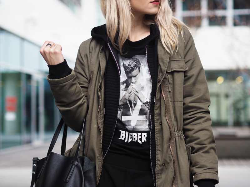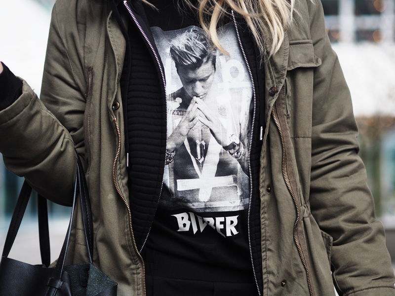 Outfit vypadá dobře, jen nejsem úplně největší fanda Justina.. to ale nemění nic na tom, že je to triko skvěle zkombinované 🙂
