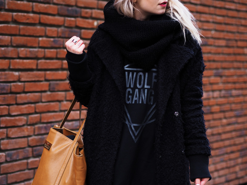Bydlet v garsonce a být typická žena sběračka je zlo. Mám strašně moc věcí a nemám je kam dávát, takže to strkám všude možně a až při velkým úklidu nebo předstěhovací mánii, která ještě pořádně ani nezačala, spoustu věcí nacházím. Napsala bych ztracených věcí, ale považujete se něco za ztracený, když už ani nevíte, že to vlastně máte a nijak se po tom nepídíte? 😀 No nějak takhle jsem znovu-objevila tuhle Wolfgang mikinu/šaty, co mám už určitě přes dva roky a měla jsem jí na sobě fakt párkrát. Jednu dobu jsem měla pocit, že je na mě moc drsňácká a že se to ke mě vlastně nehodí, pak jsem na ni zanevřela z osobních důvodů a teď jí konečně začnu pořádně nosit, protože jsem znovu-objevila i její pohodlnost a kvalitu. Jsem ráda, že konečně takový věci vnímám a přestávají se u mě vyskytovat nákupní záchvaty v řetězcích, místo toho radši investuju do toho kvalitnějšího a brzo třeba dojde i na ten COS, haha.