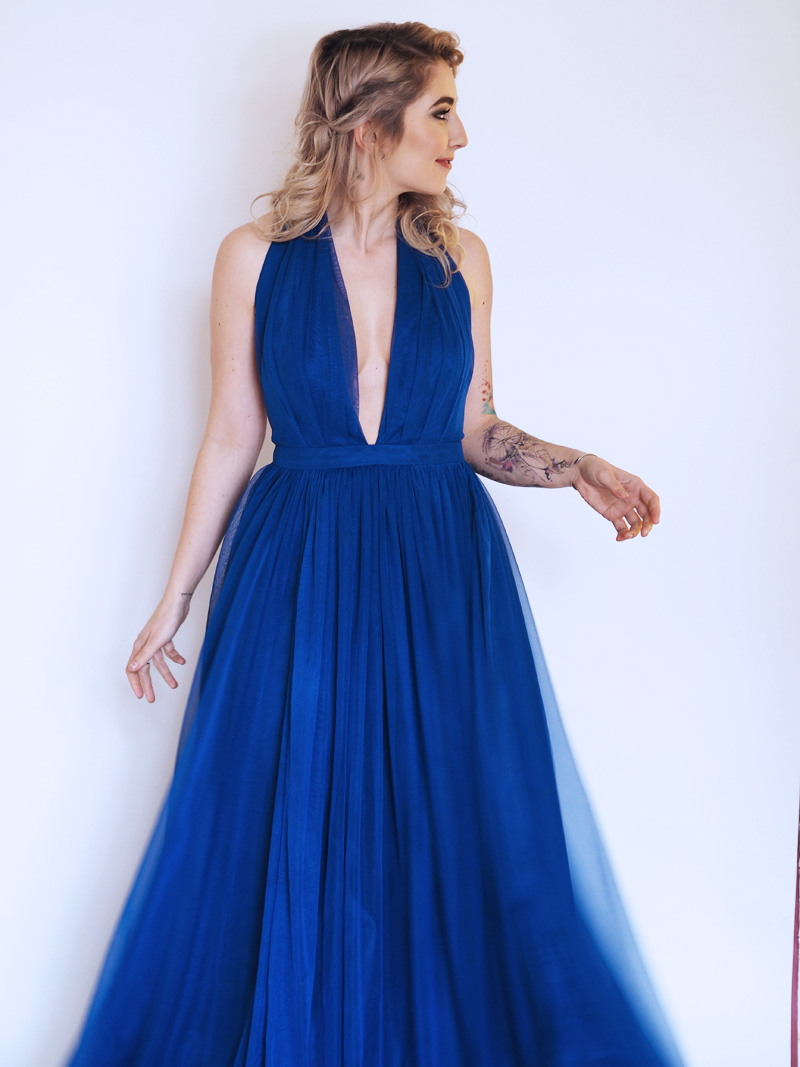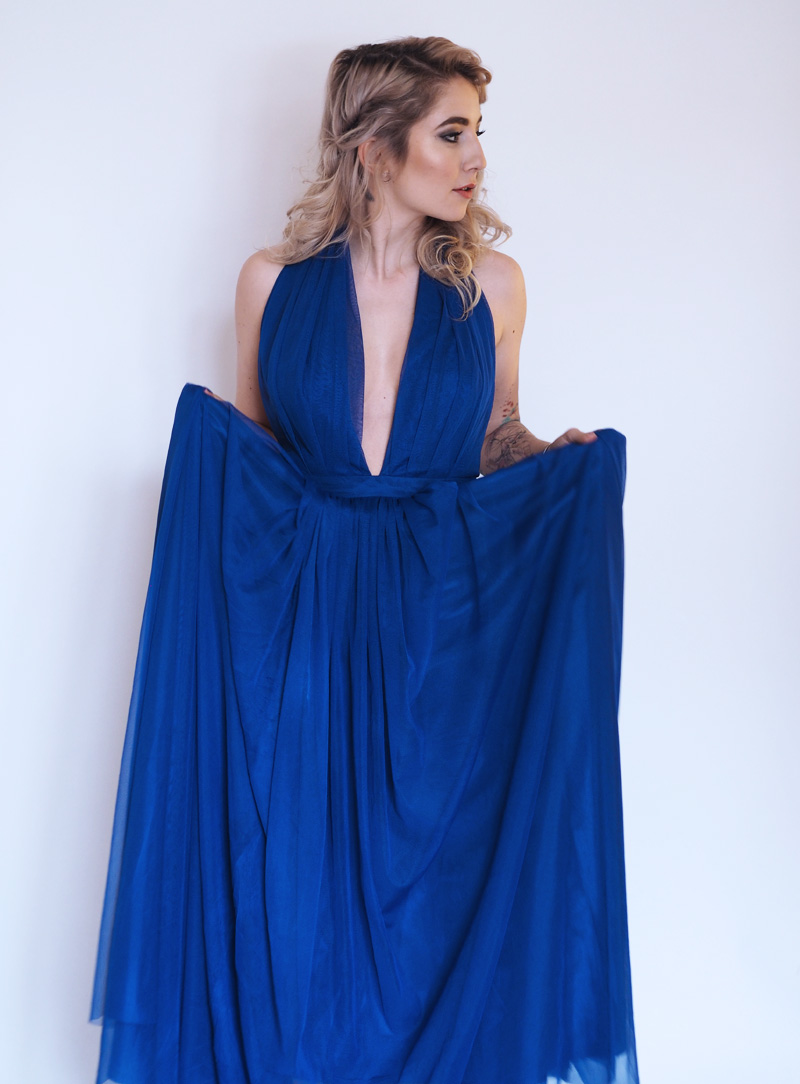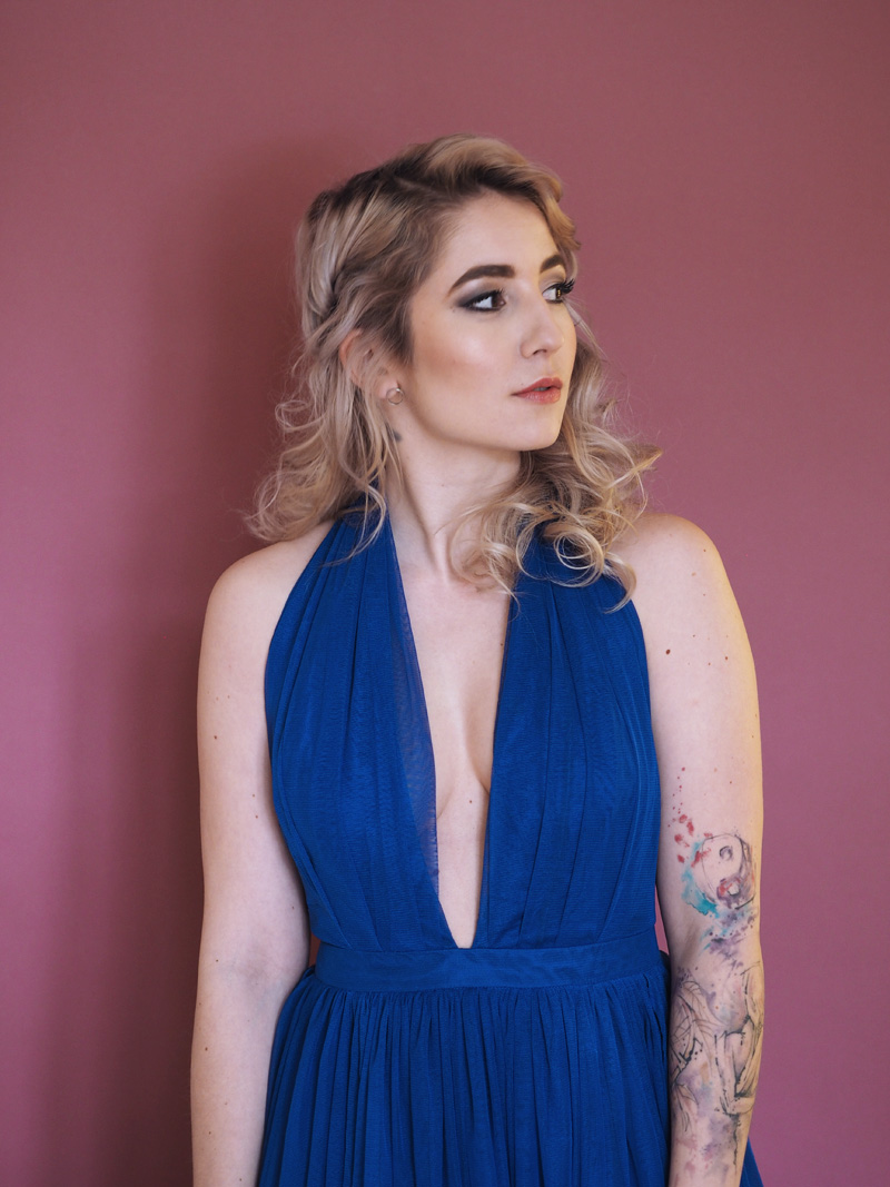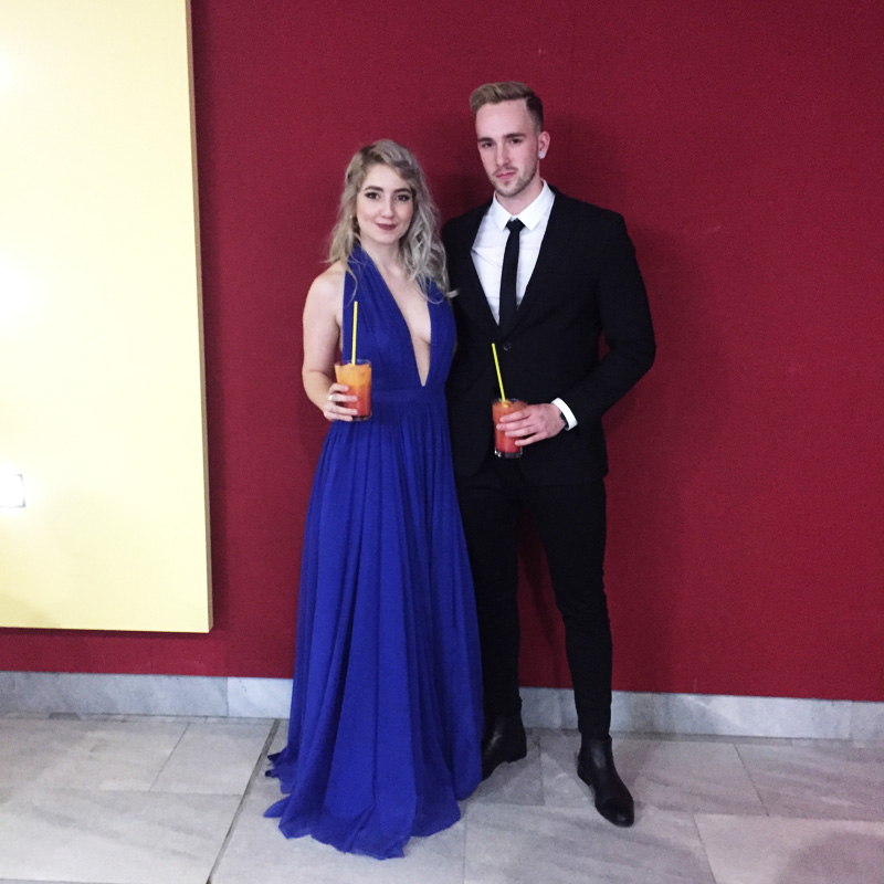 Fotky v šatech vám ale ukázat můžu, nafotili jsme je totiž s Kubou v Hubu hned po nalíčení a učesání, aby to bylo jako celek. Na instagramu vás šaty nadchly, fotky v nich jsou nejúspěšnější za poslední měsíce, jak mi aktivně hlásí statistiky, tak vám o nich chci říct trochu víc. Když mi někdy v říjnu přišla nabídka z webu Glamsy, že by mi chtěli ušít šaty na míru a pojmenovat je po mě, byla jsem lehce v šoku – příjemném samozřejmě! Příležitost byla jasná – bráchy ples – a tak jsem do toho šla. Odsouhlasila jsem střih, vybrala si barvu, poslala míry, občas si s týmem Glamsy vyměnila email a pár dní před plesem už jsem šaty obdivovala před zrcadlem. Asi vám dojde, že to nejsou šaty, ve kterých by se člověk mohl opít nebo někde hodně akčně tancovat – já jsem sice pár tanečků v diskotékovém sále zvládla, ale musela jsem si dávat dost velkej pozor, aby nevykouklo něco, co má zůstat schované. Byla jsem s nimi ale strašně spokojená, cítila jsem se v nich skvěle, vyzývavě a přesto na úrovni a stylově. No co vám budu povídat, jsem poměrně dost hrdá na to, že nesou moje