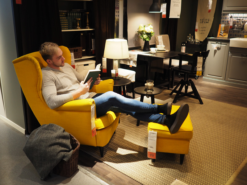 Největším problémem je skříň. Mám hodně věcí a ještě víc požadavků na to, jak má skříň vypadat. Bojuju za to, abychom vybrali tu otevřenou variantu, která je prostě přidělaná na zdi a Kuba mi tak dlouho opakuje, jak je to nepraktický a jak se na to bude prášit, že to nakonec vzdám a vyberu místo toho nejkrásnější (a taky dost možná nejdražší) uzavřenou skříň v celý Ikee. Opět si to necháváme uležet, vyfotíme ji ze všech stran, vezmem si leták s rozměrama a cenou a se zamotanou hlavou pokračujem dál.