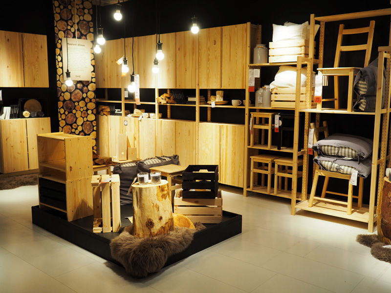 Dřevěná sekce mě dostává do kolen a já mám najednou pocit, že vůbec nechci šedo-bílej interiér, ale samý dřevo.