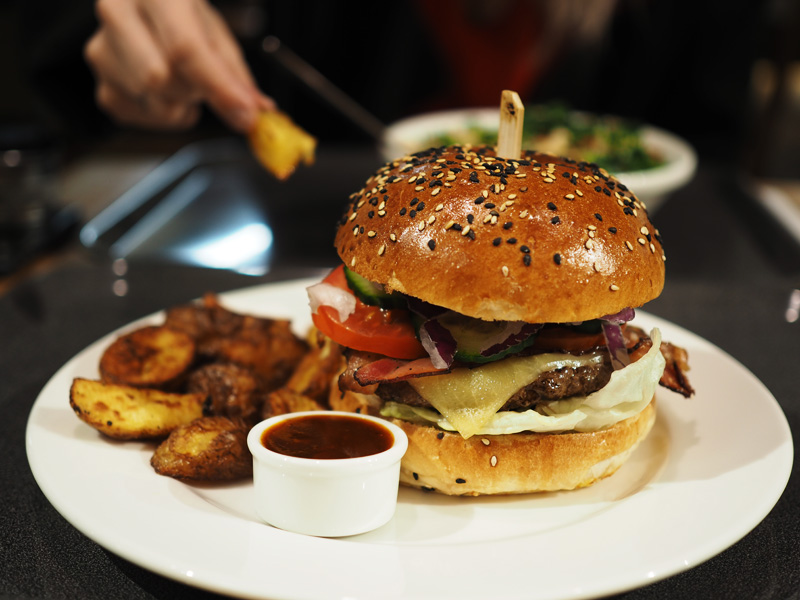 Chtěla jsem nás vzít na donuty, tak jsem rozhodla, že si dáme v Delmartu zdravej oběd, ať je to vyvážený. Dala jsem si salát a Kuba tenhle obří burger :D. Občas bych fakt chtěla být kluk! Na ty donuty jsme navíc ani nedošli, protože jsme potkali Kubovu mamku, která nás vzala na kafe a dortík a já neodolala tiramisu. Těžkej život 😀