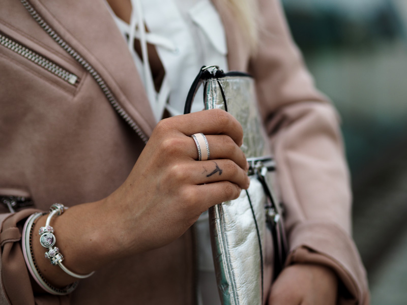 Pro mě to jsou právě drobný detaily jako rtěnka, hodinky v kombinaci s náramkem nebo výraznej prstýnek. Bez těchto věcí se cítím neuplná a díky nim zároveň pořád svá, protože je zvládnu nakombinovat v podstatě ke každýmu outfitu a svůj šatník jimi dokonale propojit. To “něco” je pro mě někdy i malej drdůlek na temeni hlavy z vrchních vlasů – to oživí každou jednoduchou kombinaci a jsem to 100% já.
