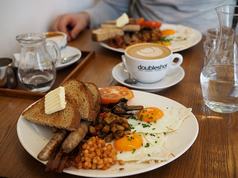 Anglická snídaně jak má být. Tady zrovna v kavárně Místo.