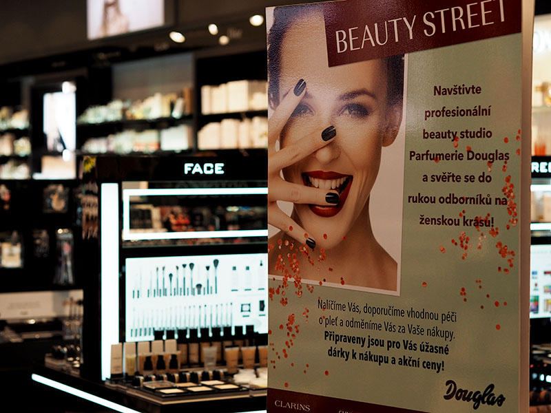 Už z názvu článku je vám asi jasný, o čem bude řeč! Douglas ve spolupráci se světovými značkami pravidelně (už pošesté!) pořádá po celé republice akci zvanou Beauty Street v rámci které vám skvělé make-up artistky poradí s péčí o pleť a udělají vám make-up. Kromě toho dostanete i dárečky, a prostě si užijete hodinku krásy zcela zdarma. Stačí se zaregistrovat přes rezervační systém na jeden z dalších termínů Beauty Street v různých obchodních centrech, k čemuž najdete přesnější info na konci článku. Teď bych vám hlavně ráda ukázala, jak jsem si tu svojí hodinku užila já v parfumerii v hradeckým Futuru, kde mě nalíčila moje oblíbená make-up artistka Lucka, která mě líčí pravidelně na všech akcích, které s Douglasem máme a k mýmu štěstí bydlí právě v Hradci, takže se to krásně sešlo. V klasický hodince při Beauty Street se radí hlavně ohledně péče o pleť, kterou spousta žen podceňuje a řeší jen vrchní make-up, což je samozřejmě velká chyba, ale my už jsme na toto téma měly s Douglasem několik workshopů, takže jsme se mohly rovnou vrhnout na make-up.