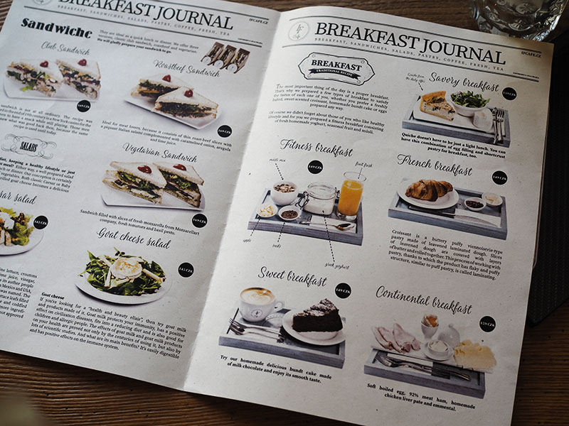 Na IF Café jsem slyšela samou chválu už dřív a když jsem jednou v HUBu vyzkoušela jejich dezerty a to konkrétně citronovou tartletku, bylo mi jasný, že sem někdy musím. Byli jsem tam s Kubou už v týdnu a ta tartletka byla jediným vyprodaným dezertem. Zkusili jsme teda předraženej chleba s avokádem, ale o tom někdy jindy. Včera jsme tam vyrazili na snídaňový menu, který mě nadchlo už takhle na papíře, protože hezčí jsem asi nikdy neviděla. Měla jsem chuť na řeckej jogurt, ale teda ne s jablíčkem, ale nějakým jiným ovocem, což nebylo možný, takže padla volba na slanou variantu.