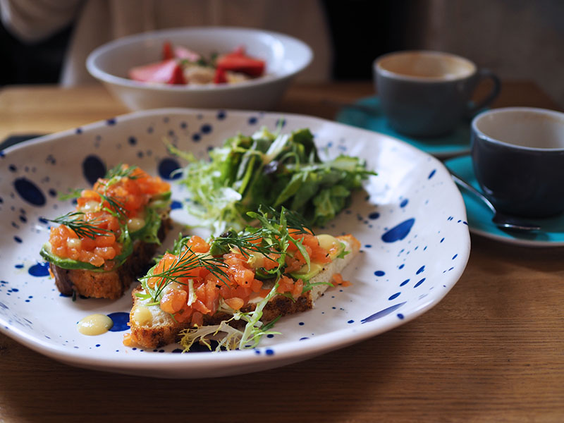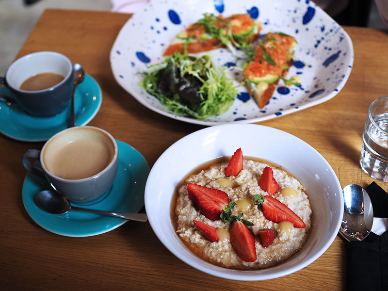 V Cobře dělají o víkendu snídaně celej den, což se hodí, když se do města dokopete až v době oběda, což se nám během víkendů stává dost často. Navíc teď, když nejezdí červený metro a náhradní doprava je peklo pekelný, využíváme tak jen sedmnáctku, která chytře staví pár metrů od Cobry. Proto jsme tam byli v pátek na večeři a drinku, v sobotu na brunchi a v neděli na kafi 😀. Kaši jsem si dala proto, že už jsem si ji tam jednou dala a byla to nejlepší kaše, jakou jsem kdy měla. Tahle ale byla uplně jiná, minimálně co se týká nazdobení, takže jsem byla trochu zklamaná (tu první variantu uvidíte v dalším Days in pictures) a navíc jí byl takovej kýbl, že jsem snědla jen půlku. Kuba si dal tousty s lososovým tatarákem a avokádem, co byly ve speciální denní nabídce a měl to vynikající. Co musím ještě u Cobry zmínit jsou super ceny, s kavárnama v centru se to moc nedá srovnat.
