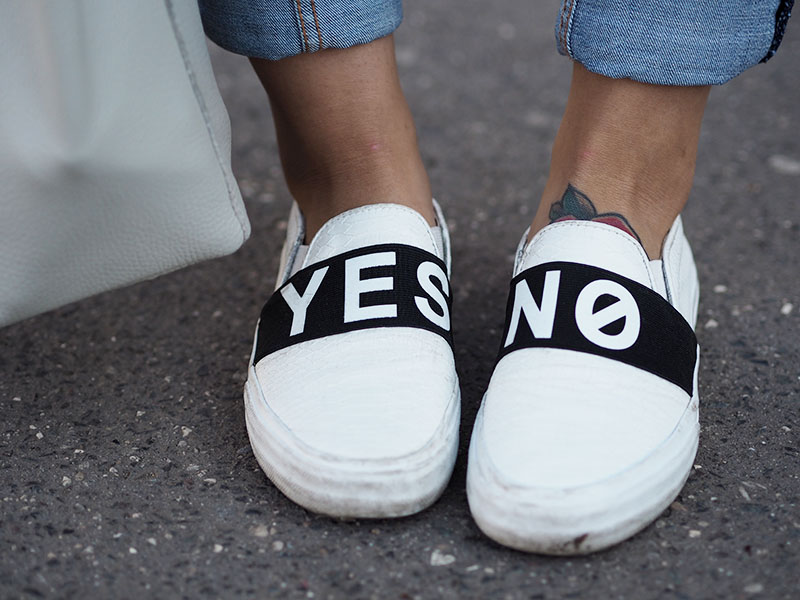 Na ty vyloženě dámičkovský nebo business outfity mě nikdy moc neužilo, ale čas od času to na škodu není. Ovšem čistě v “pracovním” outfitu mě potkáte asi jen když jdu na zkoušku, protože jinak to vždycky něčím rozbiju. V tomhle případě třeba boyfriendama a sliponama s nápisem a přesně tak mě to baví. Den předtím jsem třeba zkombinovala Gant košili s Freddy kalhotama a i to mi přišlo parádní, tak vám to někdy taky vyfotím. Košile miluju odjakživa a tohle nový sako jsem si zamilovala snad ještě víc, je dlouhý, lehce vypasovaný, má kapsy a prostě splňuje všechno, co jsem u saka hledala. Konečně jsem přišla na to, proč každej tak miluje ZOOT – mají tam milion věcí, který nikde jinde v ČR neseženete a všechno si to můžete zdarma vyzkoušet na výdejně, což vám jiný eshopy rozhodně nenabízej. V tomhle outfitu jsem byla na Digijobsu, což je každoroční veletrh práce v digitálním marketingu, kde jsem loni našla práci já a tak jsem tam dnes byla za tu druhou stranu, což bylo hrozně fajn a to nejen kvůli našim nejlepším cupcakům a makronkám, kterých jsem snědla tolik, že se stydim ještě o týden pozdějc :D.