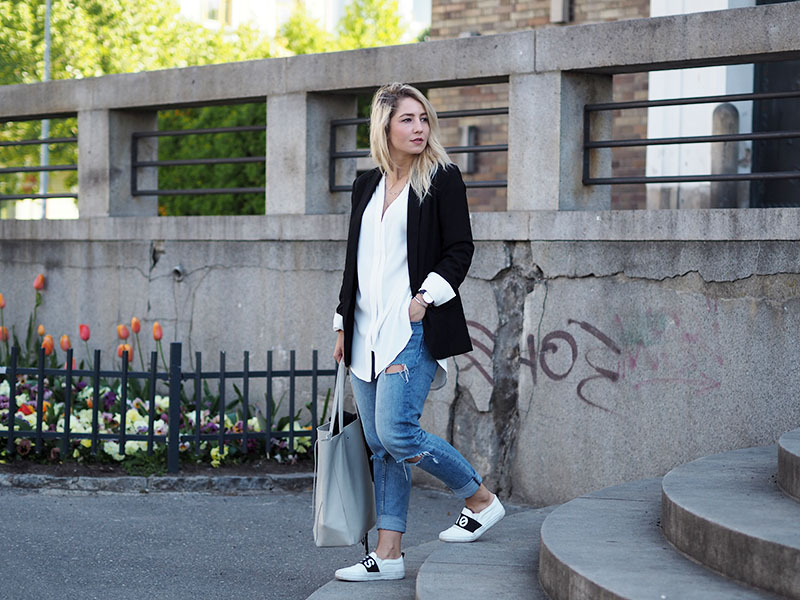 OdpovědětVymazatSuper outfit Domi, moc moc ti to slusi! Me se libi, ze proste muzes nosit uplne vsechno a prave takhle kombinace business looku s roztrhanyma dzinama ti neskutecne slusi, vypadas naprosto skvele! <3