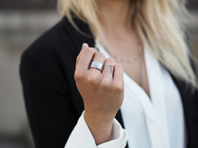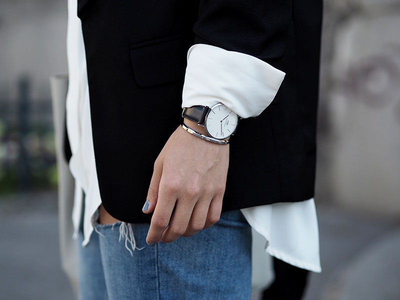 Sako – DOROTHY PERKINS via ZOOT / košile – LINDEX / kalhoty – H&M / kabelka – ZOOT / boty – PULL AND BEAR / hodinky, náramek – DANIEL WELLINGTON / prstýnek – CALVIN KLEIN / řetízky na krk – ANSWEAR