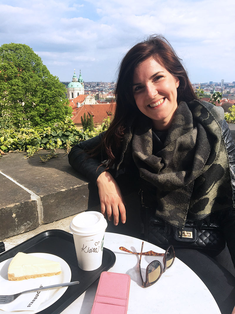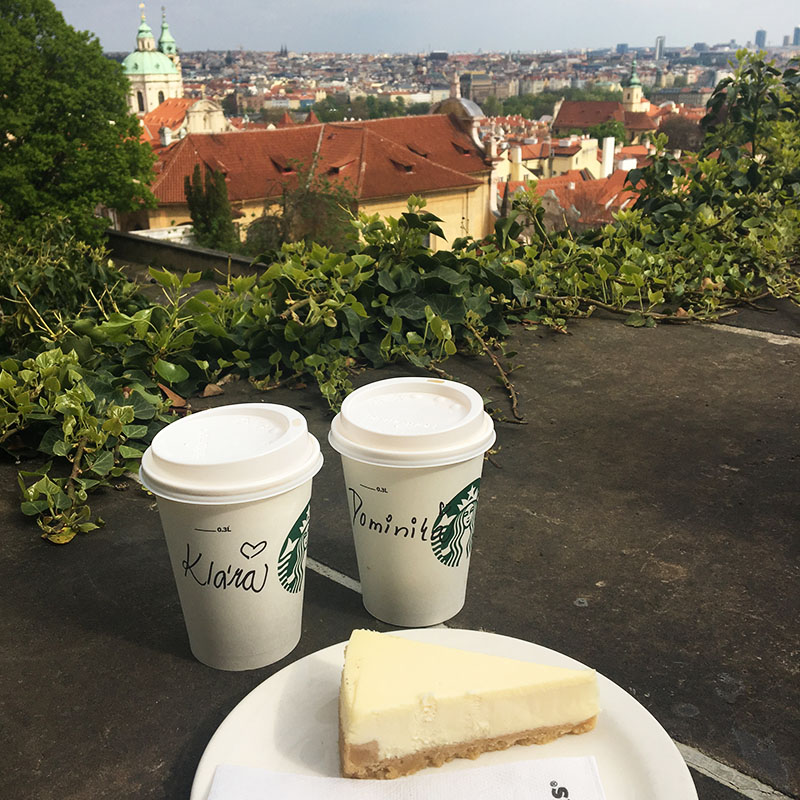 Zahradama jsme došly k Hradu a protože Klárka chtěla na kafe, vyrukovala jsem s tím, že tam někde je vlastně ten hezkej Starbucks s výhledem na Prahu. Bohužel jsem ale nevěděla, jak se k němu dostat, takže jsme tak bloudily tam a zpátky a Klára mi už asi ani nevěřila, že tam nějaká kavárna je. Nakonec jsem musela zavolat Kubovi, aby mi poradil cestu, toho jsem samozřejmě pobavila a jeho vysvětlení mi ani trochu nepomohlo.
