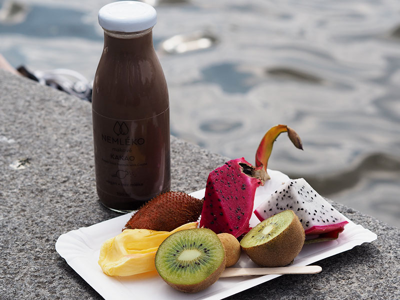 Moje volba padla na nejnovější nemléko (makovo-kakaové) a degustační mix exotickýho ovoce. Vypadal krásně, ale chuťově mě nadchlo jen žlutý Jack fruit, který bylo takovým mixem manga a pomeranče. Zbytek nebyl nijak výraznej a pokud jo, tak to není myšleno v pozitivním slova smyslu :D.