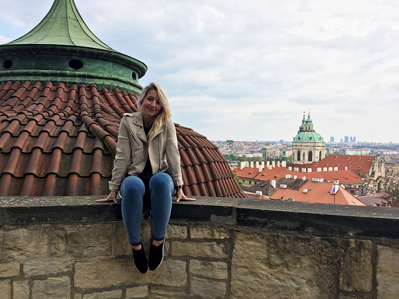 A pak jsme se uplnou náhodou ocitly na tomhle magickým výhledu, kde ani jedna z nás nikdy nebyla. Prošly jsme jen nějakýma nenápadnýma schodama a tohle se před námi rozprostřelo! Byla to nádhera! A navíc tam ani nebyly davy jako na všech ostatních místech v okolí Hradu.