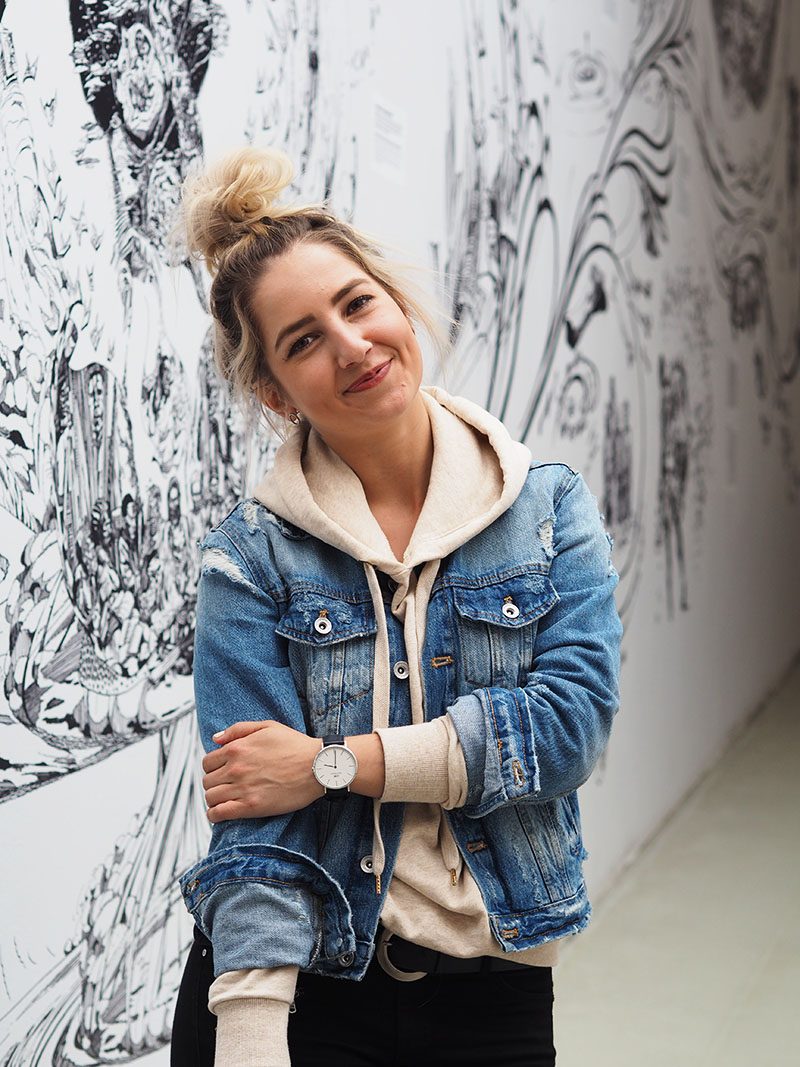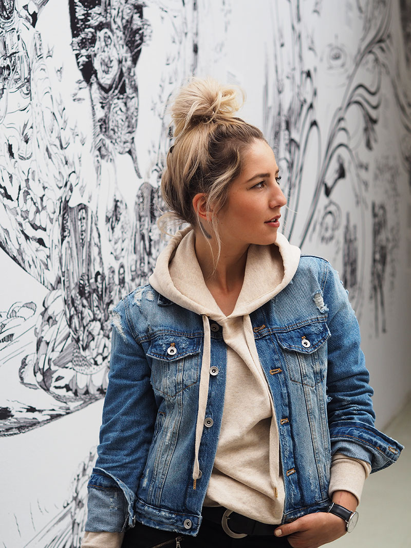 Schválně, kdo už sem chodí tak dlouho, že pamatuje moji éru drdolů na samým vrcholu hlavy? Nosila jsem je pořád. POŘÁD. Bylo to nejpohodlnější a nějakým záhadným způsobem jsem se v nich cítila nejlépe. Teď zpětně to moc nechápu, koukejte třeba TADY, TADY nebo TADY, haha. Docela jsem se do těch svých starých outfitů zabrala, během hledání těhlech odkazů, občas to bylo vtipný – a občas to bylo prostě jen mimo, ale kdo to tak neměl, že ano. Tyhle hladký vysoký drdoly už teda nenosím. Nejdřív proto, že jsem na ně začala schytávat kritiku online a taky na mě jednou v obchodě random kluk zavolal, že bych byla hezčí s rozpuštěnejma – pamatuju si to dodnes 😀 No a pak jsem si našla Kubu. A s novým klukem nebudete chodit na rande v uplácnutým účesu, kterým si už navíc nejste tak moc jistý… A tak jsem zvykla na rozpuštěný vlasy a když jsem mu pak jednou drdol ukázala, řekl mi rezolutní ne :DDD. Oproti tomu tenhle roztahanej drdol, co je smotanej jen tak mimoděk, se setkal s docela dobrým ohlasem a tak si ho dělám v případě nouze doteď. Jen v něm moc nefotím, což se zrovna minulý víkend změnilo, protože přestože můj outfit nebyl dán dohromady za účelem fotit (proto je takovej hodně jednoduchej a pohodlnej), nedalo mi to nevyužít fotogenický prostory DOXu a pár fotek tam neudělat. Takže voilá, Domča v drdolu!