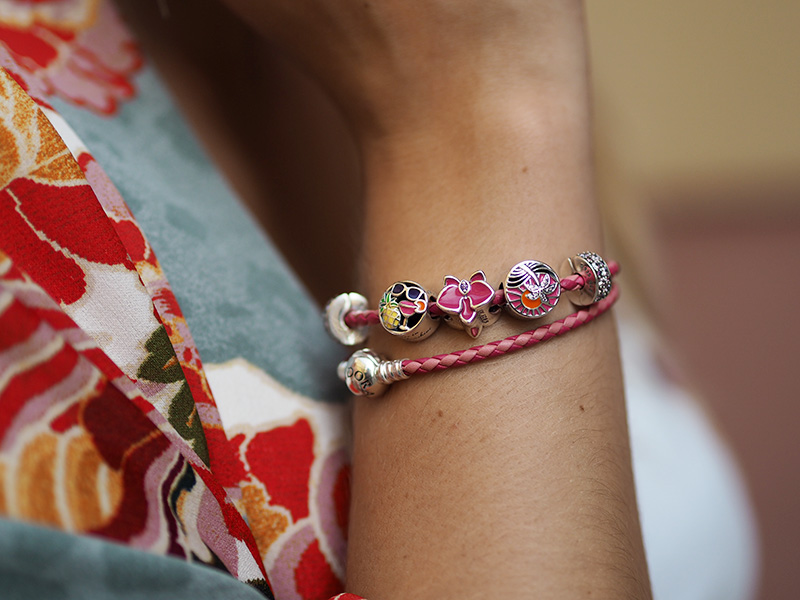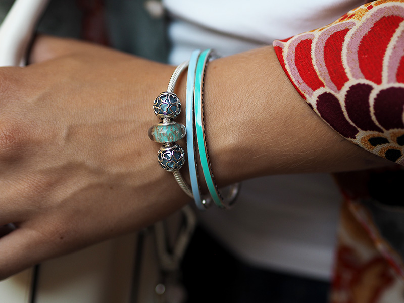 A proč vlastně píšu o létě a mých plánech? Protože jedním z témat tý veliký #DoPandora kampaně, kterou už určitě znáte i pozpátku, je právě i léto a ukázka toho, jakými způsoby si ho můžeme užít a zářit. Zářit třeba i barvama, jako já v tomhle outfitu, protože víc barevnou kombinaci jsem snad nikdy neměla. Nikdy jindy než v létě mě barevný outfity nelákaj, nicméně teď poslední dobou se s barevnými outfity roztrhl pytel a mě to neskutečně baví. K tomu skvěle ladí právě i tahle super barevná letní kolekce Pandory plná korálku s mořskými tvory a ovocem. No a za mě stále vedou ty barevný bangle náramky.