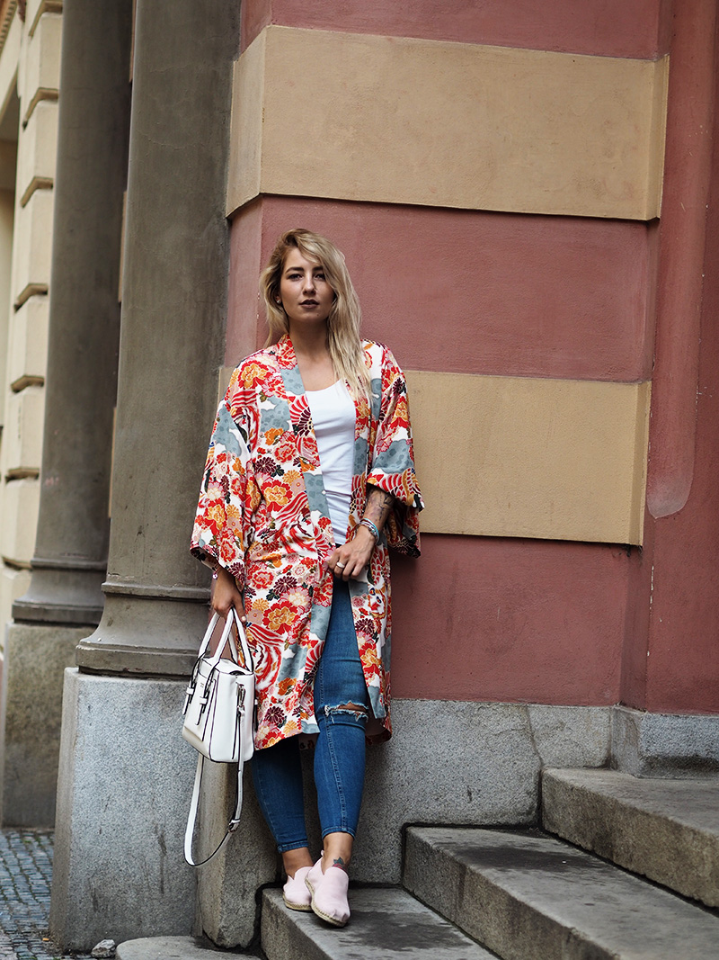 Kimono by se mi více líbilo kratší, pod zadek 🙂 Korálky jsou prima a v létě má prostě člověk náladu na více svěží outfity, viď? Hezké léto, Týna