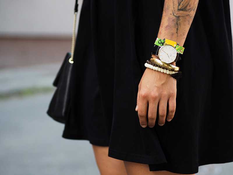 Šaty, kabelka – ASOS / boty – TAMARIS via ANSWEAR (TYTO) / náramky – ZOOT / náhrdelník, náušnice – CALVIN KLEIN / brýle – BAŤA