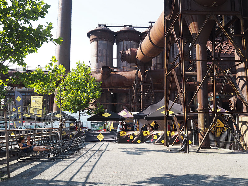 Z jednoho jídelního místa jsme se plynule přesunuli na druhý a v Ostravance na kafi (několika kafích) seděli až do odpoledne. Pusy se nám nezastavily několik hodin v kuse a když jsme usoudili, že bysme teda měli vyrazit do areálu, protože jsme všichni večer odjížděli zpátky do Prahy, byly asi 2 odpoledne. Ne že by si někdo z nás stěžoval, suprově jsme si sedli a bylo to strašně príma.
