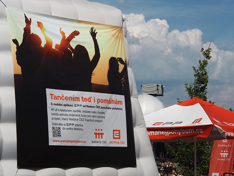 Ale od začátku! Na Colours nás pozval ČEZ se svojí aplikací EPP – Pomáhej Pohybem, což se prostě na festival neuvěřitelně hodí a já vám tak můžu ukázat další využití týhle appky, o který už psala třeba Smooth uplně boží článek – tu. Aplikace funguje uplně jednoduše, nastavíte tam aktivitu (chůzi, běh, bruslení, turistika, jízda na koni, tanec – cokoliv) a spustíte měření. Když aktivitu ukončíte, dostanete určitý počet bodů podle vašeho výkonu a ty body potom můžete přidělit k projektu, který potom Nadace ČEZ finančně podpoří, takže vlastně uplně přirozeně pomáháte pohybem. Je to uplně lehký a projekty se tam krásně točej, protože každou chvíli se díky aktivnímu zapojení lidí povede dosáhnout cílovýho počtu bodů a načtou se projekty nový. TADY kdyžtak najdete seznam všech, co jsou aktivní, dosažené i realizované.