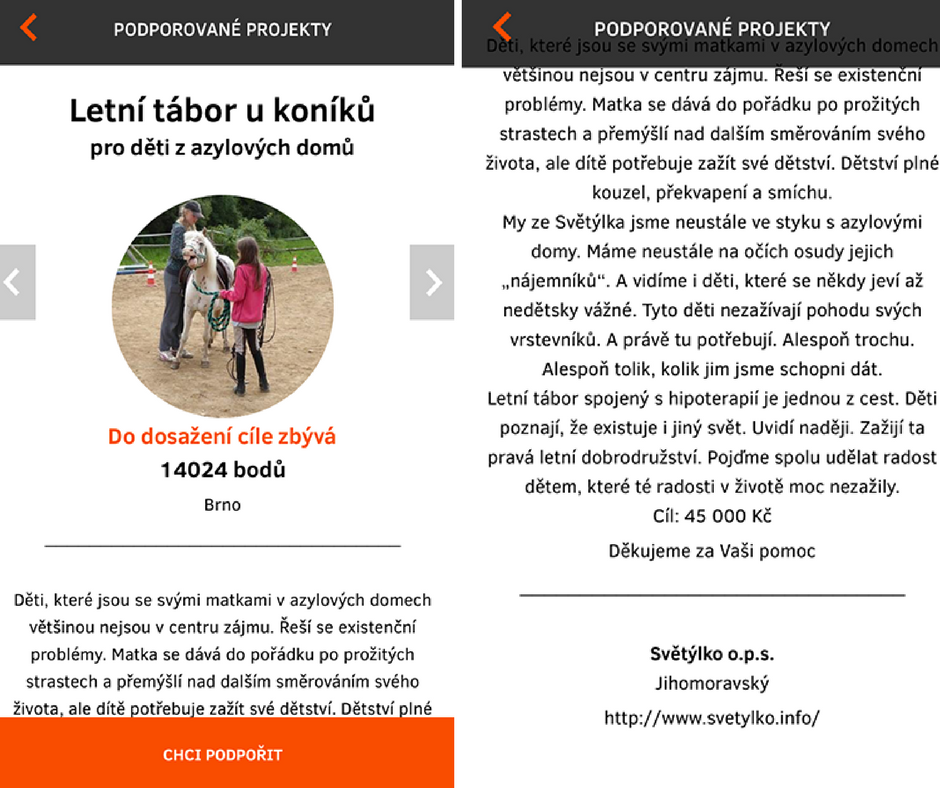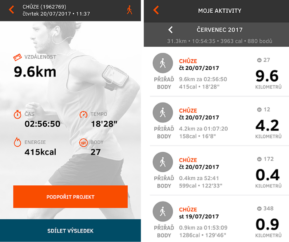 No a protože člověk na festivalu nachodí spoustu kilometrů, měla jsem většinu času nastavenou jako aktivitu chůzi. Za ty dva dny mi to napočítalo krásných 31km, za což už byla slušná kupa bodů, který jsem rozdělila mezi dva projekty a teď jsem koukala, že jeden (koňskej tábor pro děti z azylových domů) už byl dosažen, tak mám radost. Do azylovýho domu jsem chodila na střední pomáhat a viděla jsem, jak šílený to tam pro ty děti může být, to jen tak abyste věděli, proč jsem volila zrovna toto.