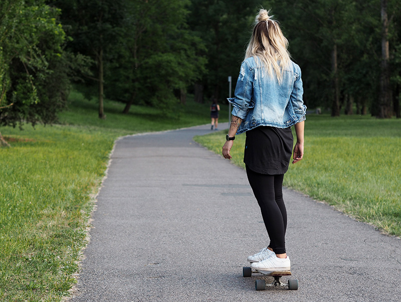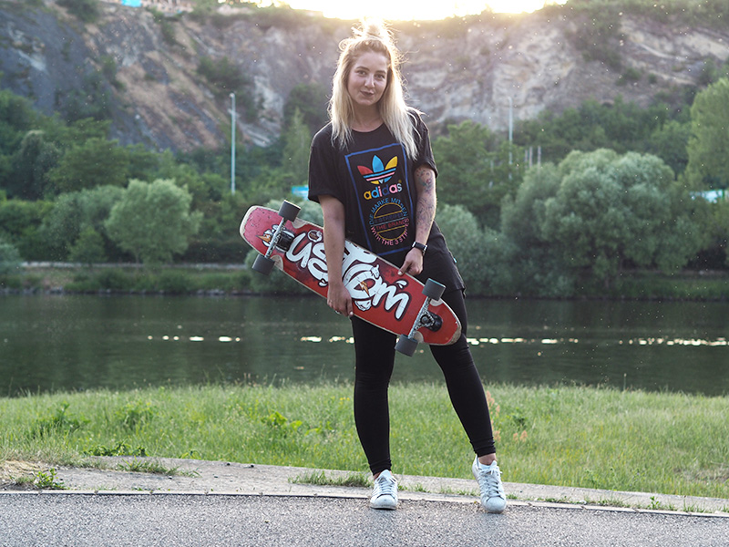 Konečně jsme si taky našli čas na longboardy. Už dlouho jsem uvažovala nad tím, že bych si nějakej pořídila, ale nejdřív jsem si to potřebovala vyzkoušet, jestli si s ním budu rozumět. Ve Žlutejch lázních se dá půjčit asi za 80,-/hod. což je pohodička a tak jsem si dvě hodiny jezdila, jednou si regulérně rozbila pusu na chodníku a jednou skočila do lesa, ale zamilovala jsem si to okamžitě. Teď se jen dokopat k tomu konečnýmu výběru a nákupu!
