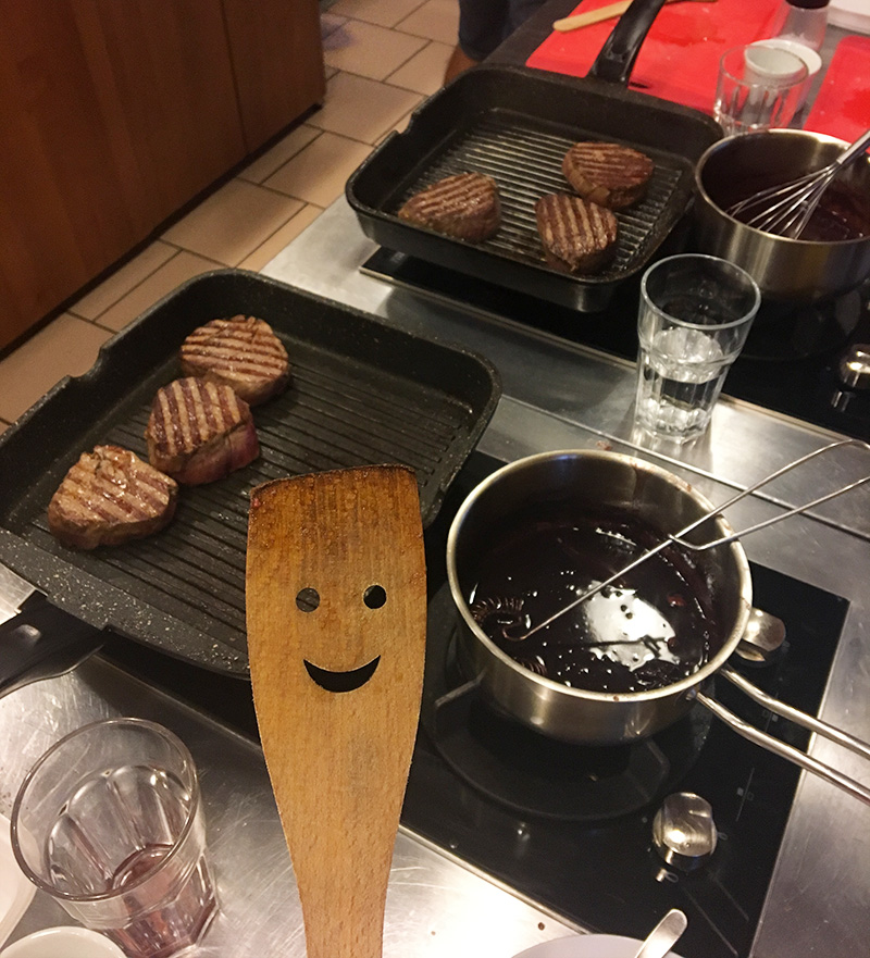 Jeden super večer jsem strávila v ChefParade, kam jsme dostali vouchery ještě jako vánoční dárek a byl nejvyšší čas je využít. Výběr kurzu jsem dostala na starost já a tak padla volba na Steaky z argentinské svíčkové. Bylo to naprosto geniální, dělali jsme předkrm, dvě hlavní jídla a zákusek a já bych se toho ujedla, jak dokonalý to bylo! Už přemýšlím, k čemu si budu přát nějakej další kurz, protože mě to fakt bavilo a určitě by mě zajímala i nějaká exotická kuchyně.