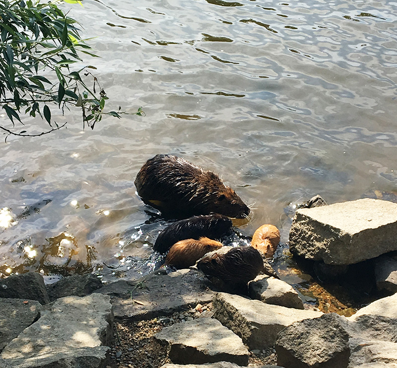 Za Podolkou jsme s Alex narazily na rodinku nutrií a místo abysme si šly sednout někam na kafe, tak jsme se plácly u vody a pozorovaly je. Ten světlounkej byl nejvíc roztomilej!