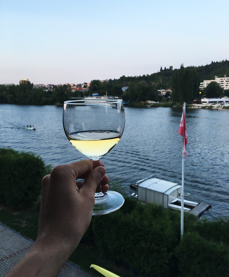No a pak byl čas na tu firemní akci. Veslařský klub. Nemám jinou fotku, než tuhle s vínem, přestože hlavním bodem byly sportovní aktivity. Do lodě si ale nikdo telefon nebral, takžeeee nic no. Vyzkoušeli jsme si pádlování na dračí lodi, dojeli jsme až na Náplavku a zpátky pak docela s vypětím sil. Většina pak odpadla, respektive šla jíst a pít, pouze pár jedinců (včetně mě!) to nevzdalo a šlo vyzkoušet další vodní srandy. Někdo veslování a někdo paddleboardy. Já se jich strašně bála, nejdřív jsem na jeden akčně vlezla a málem hned skončila ve vodě (a byla fakt zima, žejo!), tak jsem s křikem skočila zpátky na molo, holky se mi vysmály a až pak jsem si dala druhej pokus, kterej už byl úspěšnej a trošku jsem se i projela :D. Rozhodně vím, že jsem na tom nestála naposled, teď v hezkým počasí to je dokonalej program.