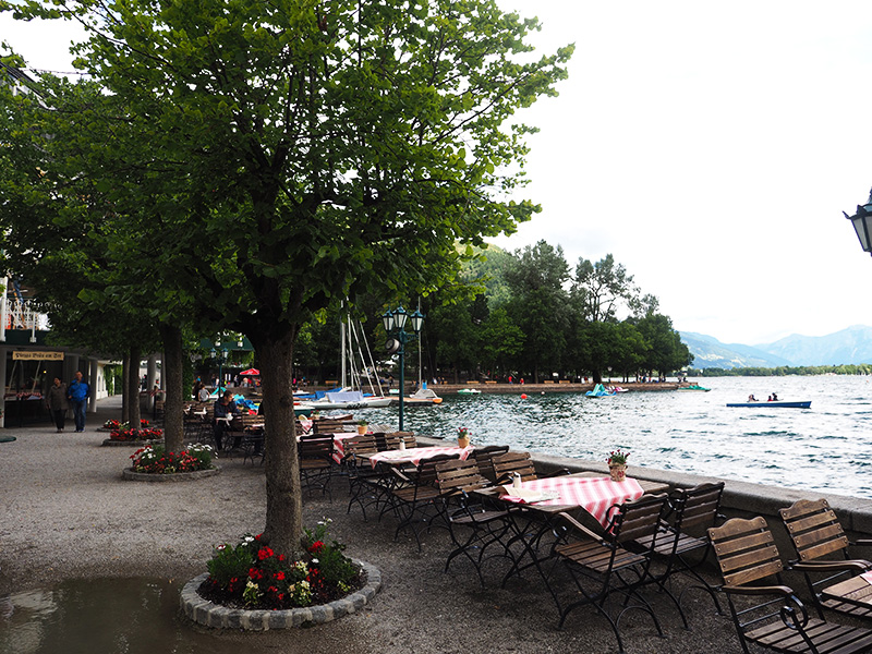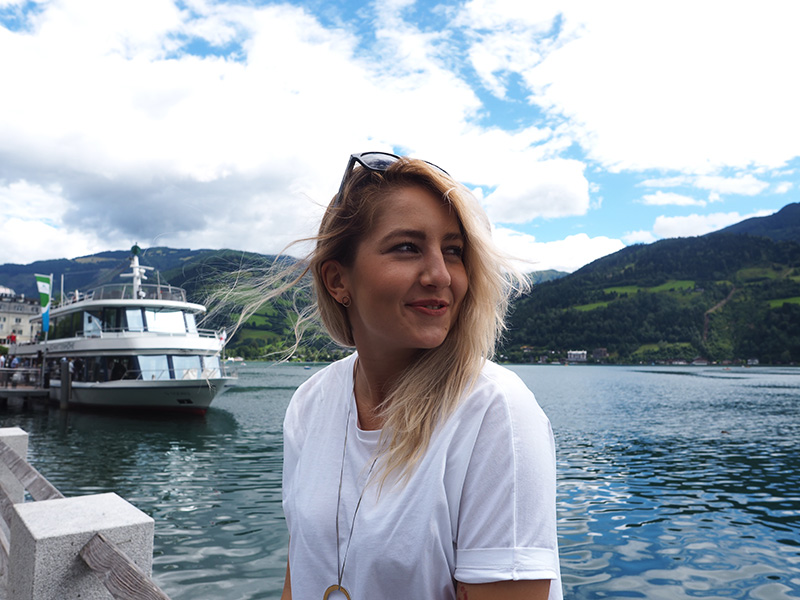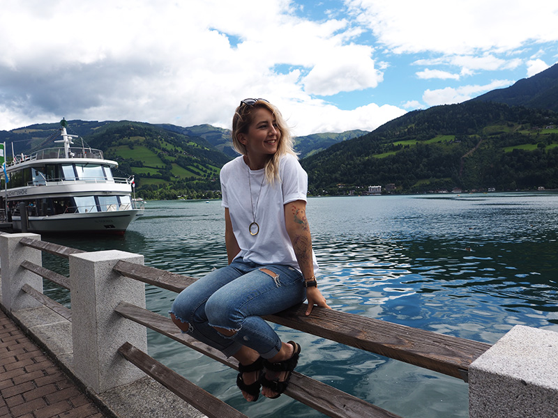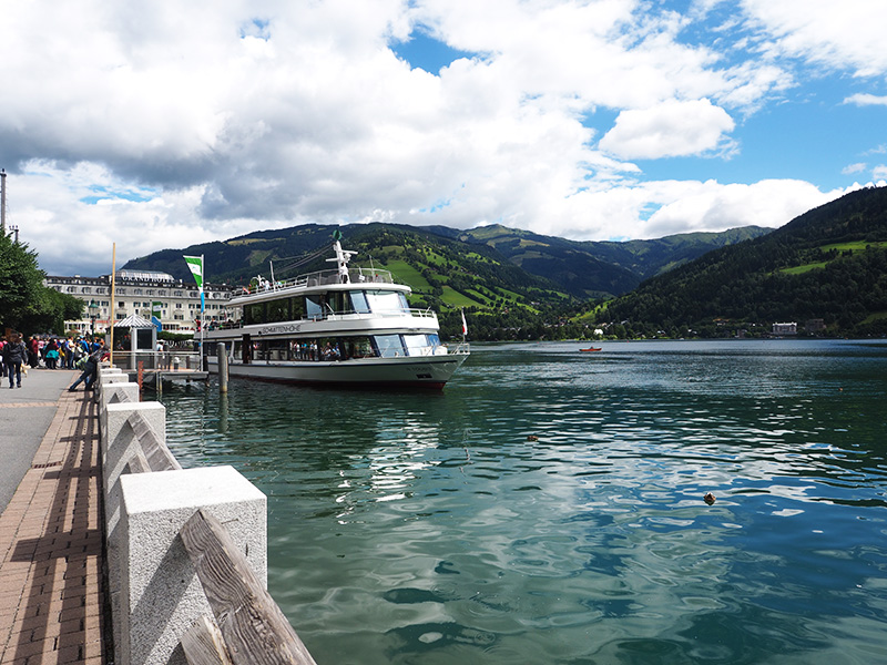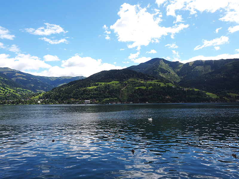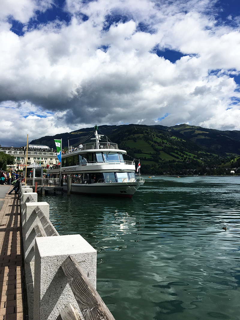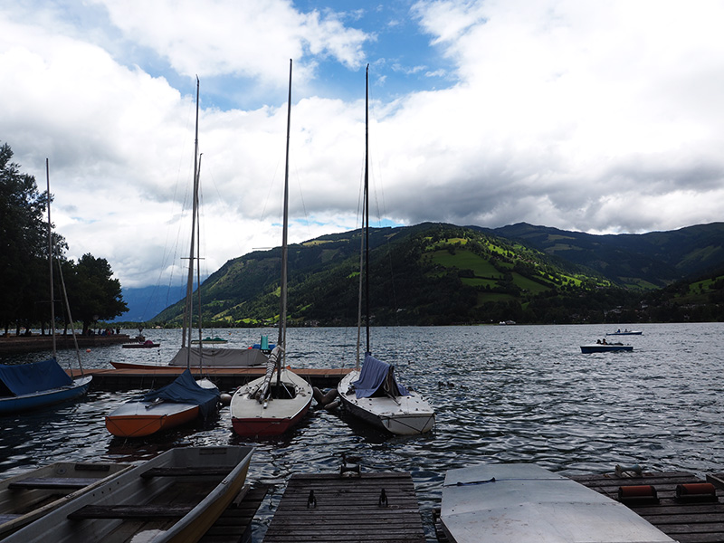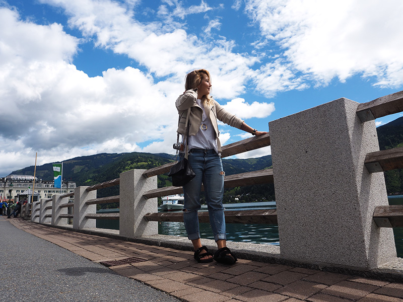 Vzhledem k tomu, že se nám po snídani vyčasilo, rozhodli jsme se to vzít domů přes Zell am See, na který jsem já jako malá vždycky koukala z vrcholku Kaprunu, kam jsme roky jezdili s našima na lyže. A protože kombinace jezera a hor mi přijde naprosto kouzelná a protože jsme tohle roztomilý městečko měli skoro za rohem, nestálo nás to žádný velký rozhodování.