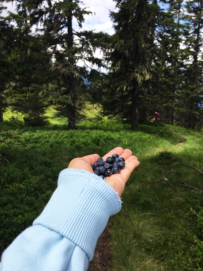 Jídlo nikde na trase nebylo – to nevim, jak moc je obvyklý nebo ne, ale obědvali jsme tím pádem borůvky. Ty ale teda stály za to, to zas musím uznat.
