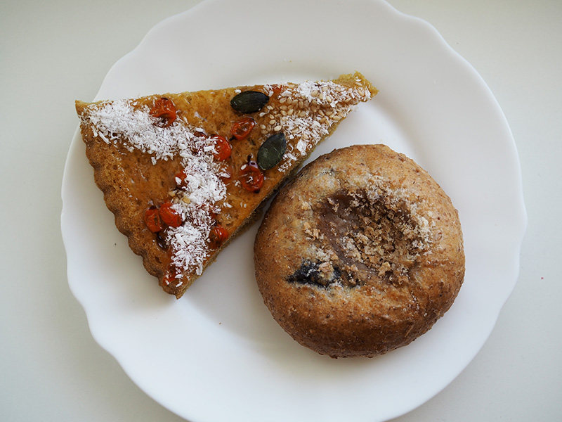 Je tam třeba i Bazalka, což je taková naše hradecká Zdravá Výživa, kterou všichni uplně zbožňujou a já tam ujíždím na bezlepkovým rakytníkovým koláči a veganským koláči s povidlama. NEJ-LEP-ŠÍ.
