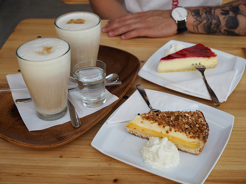 Jedno ráno jsem si na prasáky zašli na snídani právě do už zmíněnýho Localu a dali si dort. Ke snídani. Proboha. 😀