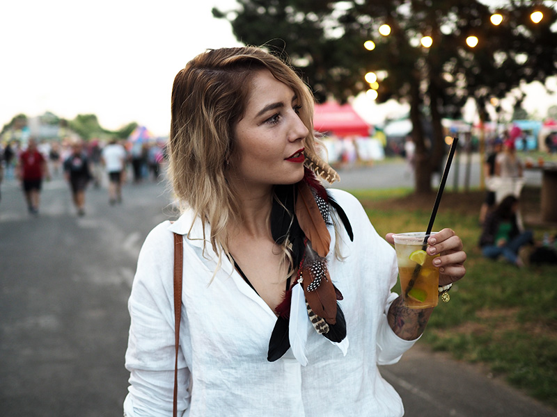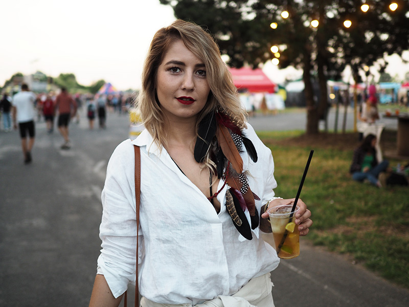 Já jsem na RFP byla na víc dní vlastně poprvé. Do letoška jsme vždycky chodili akorát s našima na českej den, kdy hrála třeba Lucie, to bylo boží. Letos jsme s Kubou dostali od Zootu lístky na celej festival a k tomu jsme navíc dělali asi dvě hodinky lovce stylu, což jsem si vždycky hrozně chtěla vyzkoušet – hledat v davu stylový lidi, přijít za nima, pochválit jim outfit, vyfotit je a dát voucher – rozdávat radost je prostě boží.