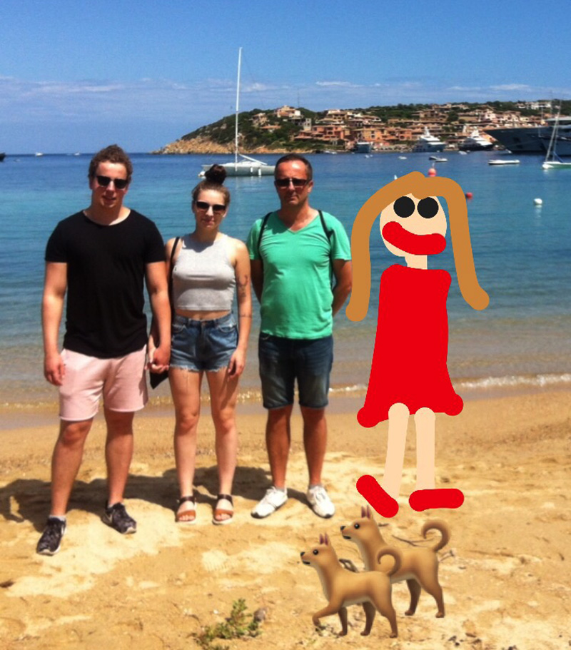 Naši mi každej den posílali fotky, asi aby se mi nestejskalo. No a jednou už jsem nechtěla psát ty klasický “och ach” reakce a tak jsem tam přikreslila “sebe” a pejsky :D.