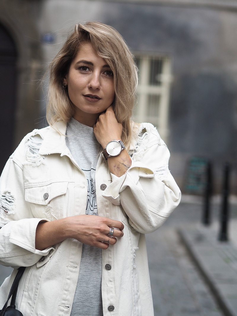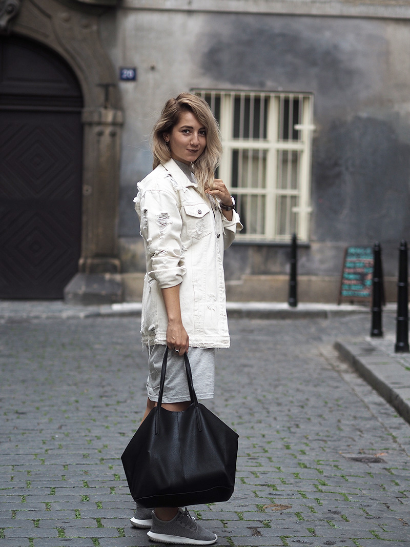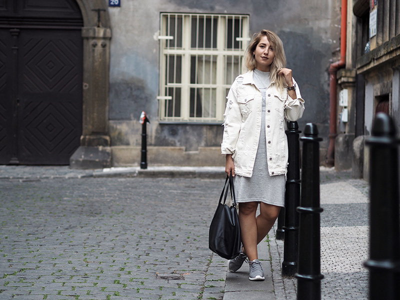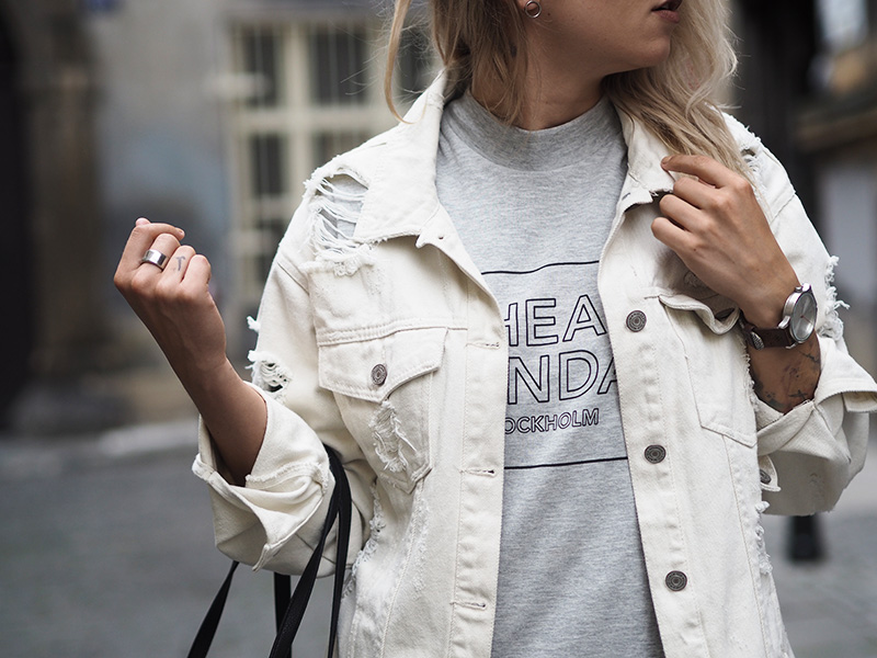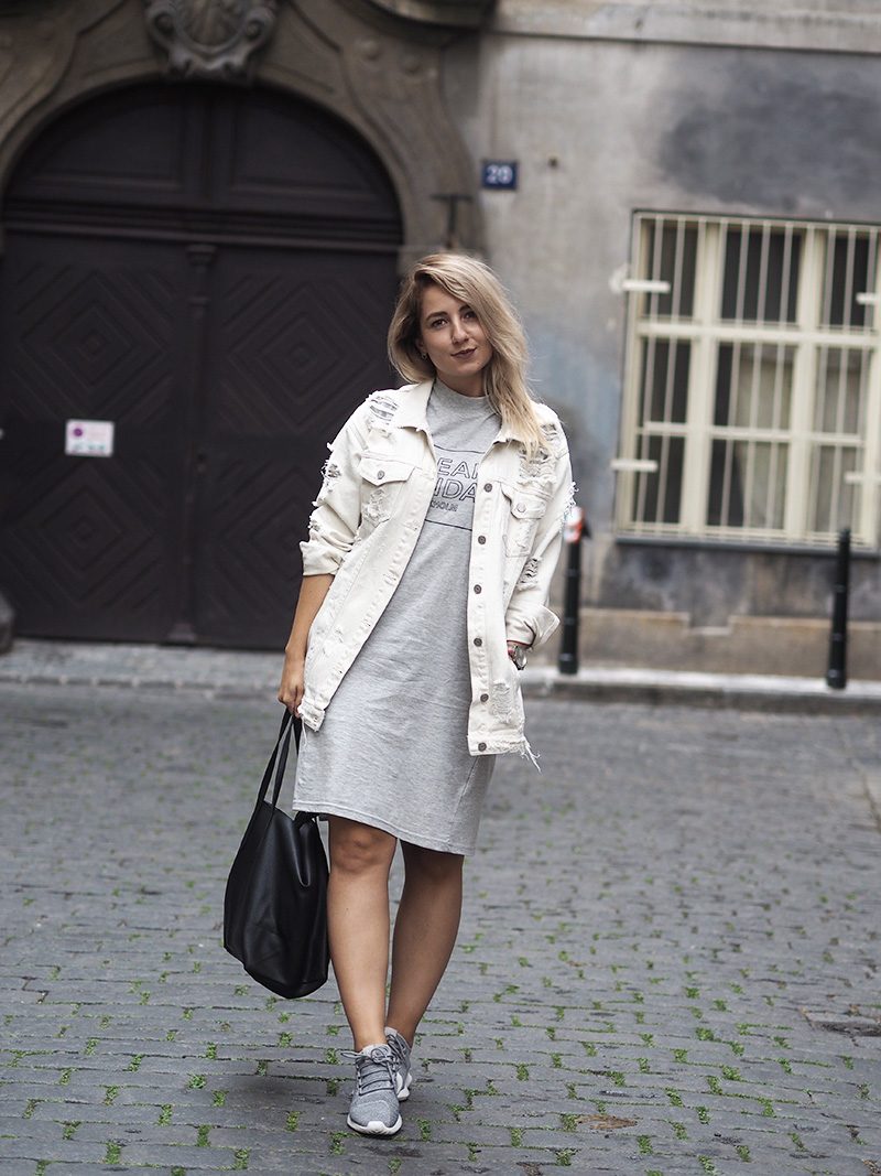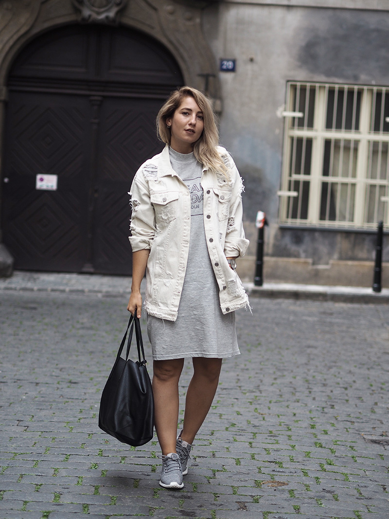 Pamatujete, jak jsem vám kdysi říkala, že občas jsem ve svým oblečení ráda zachumlaná a schovaná, přestože je venku třeba x milion stupňů? Tenhle outfit je toho jasnou ukázkou. Naštěstí zrovna nebylo až takový vedro a já k oversized volnejm šatům mojí oblíbený značky Cheap Monday mohla mít ještě další vytahenej kus oblečení a to bílou potrhanou džísku, která je mým nejnošenějším kouskem za posledních pár týdnů. Když si sama v sobě něco řeším, s něčím se vyrovnávám a nejde mi to uplně snadno, chci se cejtit přesně tak jako v tomhle outfitu.