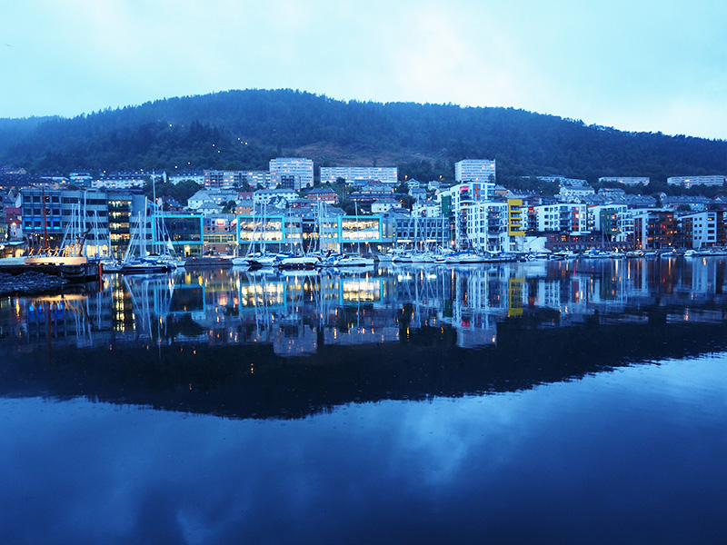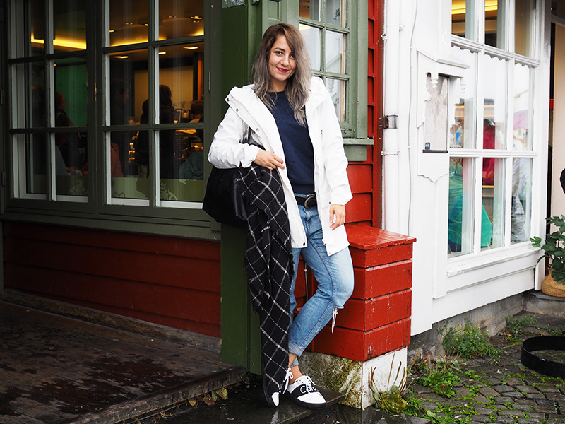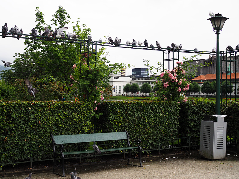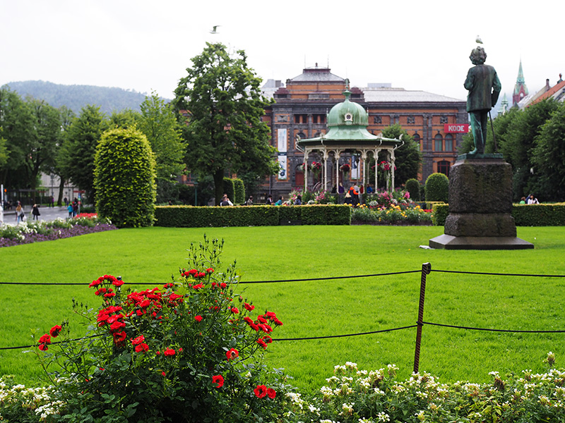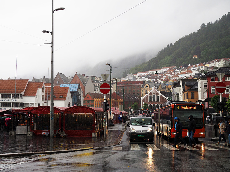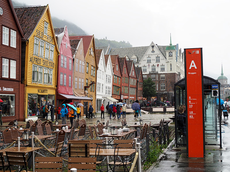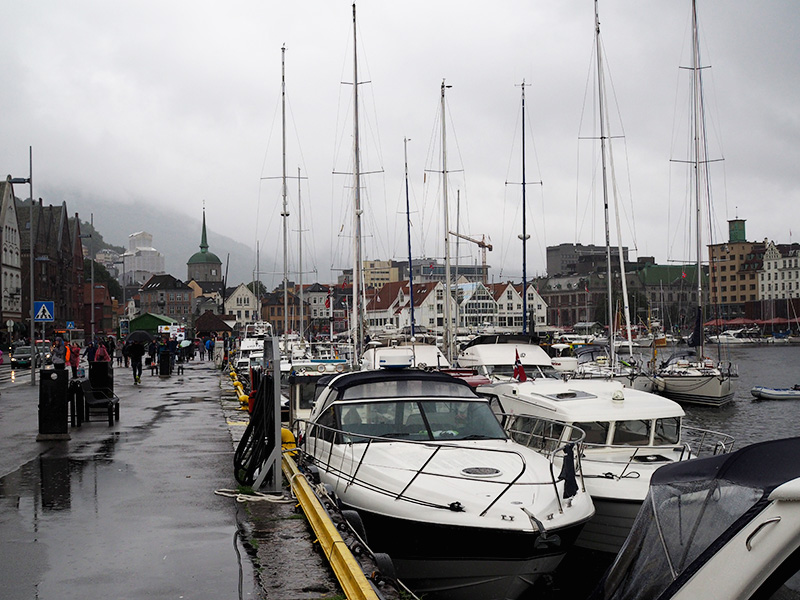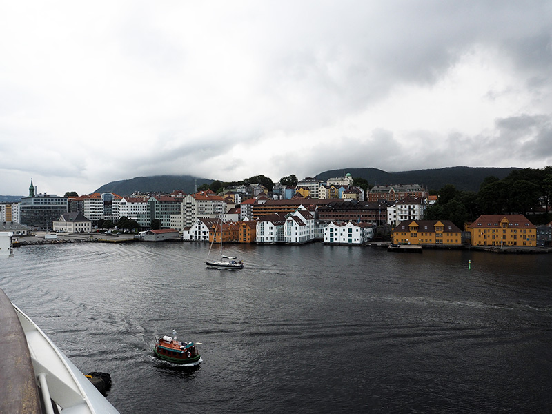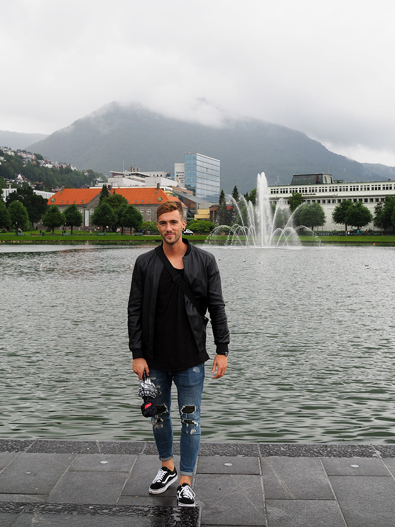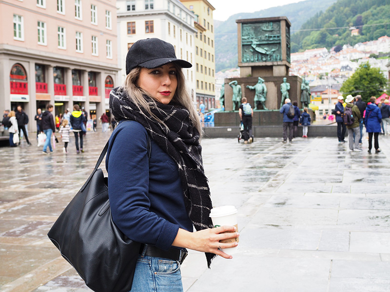 Nejvíc hotová jsem samozřejmě z vrchního patra, kde je parádní bazén a dvě jacuzzi. Vážně doufám, že počasí dovolí a budem tohle patro využívat! Na obědě se nějak vzpamatujem z těch silnejch dojmů a využijem toho, že máme až do večera volno a vyrazíme ještě prozkoumat město. Samozřejmě začne pršet ve chvíli, kdy vytáhnem paty z lodi. A ne jen tak poprchávat, opět je to naprosto hustej déšť a my tak letíme do prvního obchodu se suvenýrama a kupujem deštník I love Norway 😀. Dojdem do centra, obdivujem ty stylový baráčky a zapadáme přečkat ten největší liják do kavárny. Jakmile to přejde, vybíháme zas ven a prolejzáme všemožný uličky, nacházíme krásný parky, fontány a vyhlídky. Užíváme si to na maximum a já Kubovi každou chvíli tisknu ruku, abych se ujistila, že se nám to nezdá a že jsme bez chvilky pořádnýho plánování najednou v Norsku.