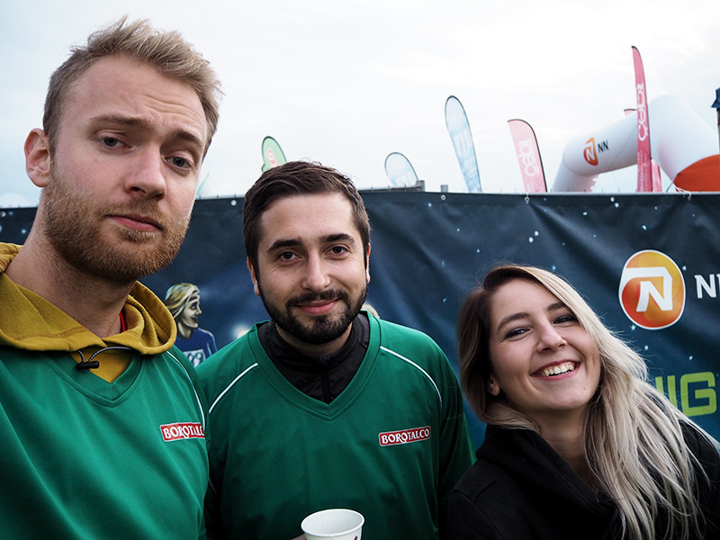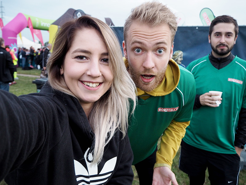Jakmile je běh odstartován, je najednou louka poloprázdná a já tak rychle narazím na sunní kluky, kteří mají vyrážet o hodinu později. Během chvilky zjišťuju, že Tom nepostrádá základní blogerské vlohy, protože bez jedinýho naléhání fotí na můj Olympus selfíčka a s Jiřím pózujou jedna radost :D.