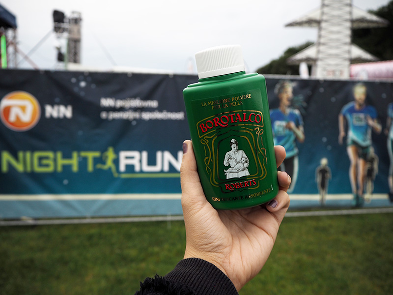 U registrace se srážím s holkama blogerkama – Brixi a Péťou, se kterýma jsem měla tvořit blogerský trio, který tenhle běh poběží za jeden tým. Tým Borotalco. Borotalco je italská značka deodorantů a je to jeden z našich největších klientů v Sunu. A zároveň taky jeden ze sponzorů Night Run série. Tak jsme to propojili, zapojili blogerky a taky pár sunních kluků. Holky poběžej kratší variantu – 5km Avon běh – a kluky čeká hlavní závod na 10km v černočerný tmě.