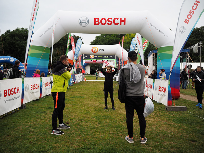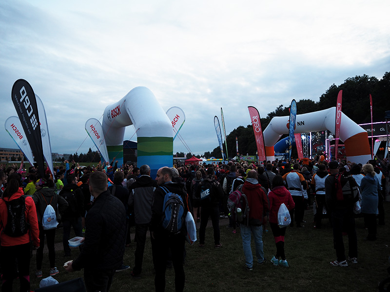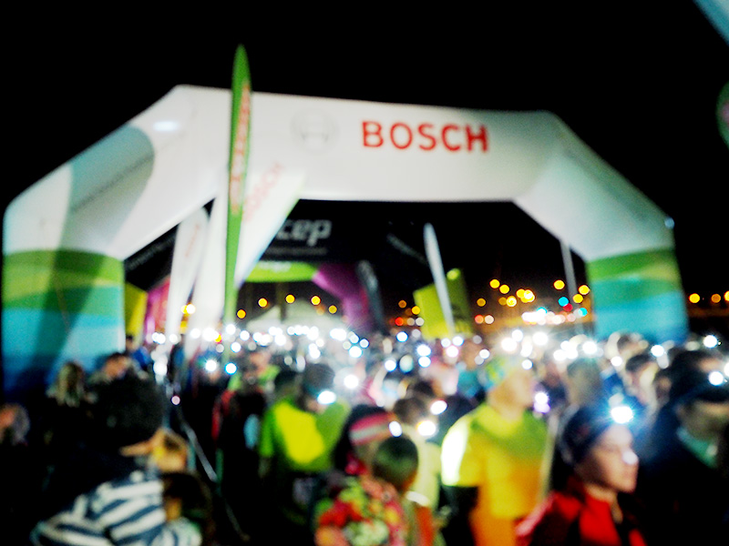 Během chvilky se setmí a běžci nasazují zářící čelovky, což má neskutečný kouzlo a to normálně nefotogenický prostředí získává na určitým kouzlu. Házíme si jedno rozmazaný selfíčko, přeju klukům hodně štěstí, poslouchám jednotný odpočítávání startu všech běžců, usmívám se, když pozoruju ty soustředěný výrazy běžců, když si nasazujou sluchátka a zapínají aplikace, co jim budou sledovat tempo a pak se celá zmrzlá mizím schovat do vyhřívanýho stanu.
