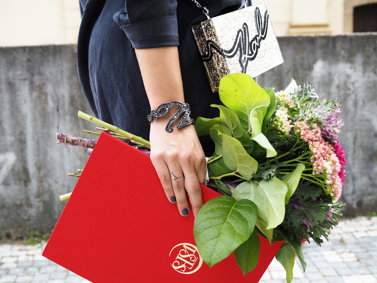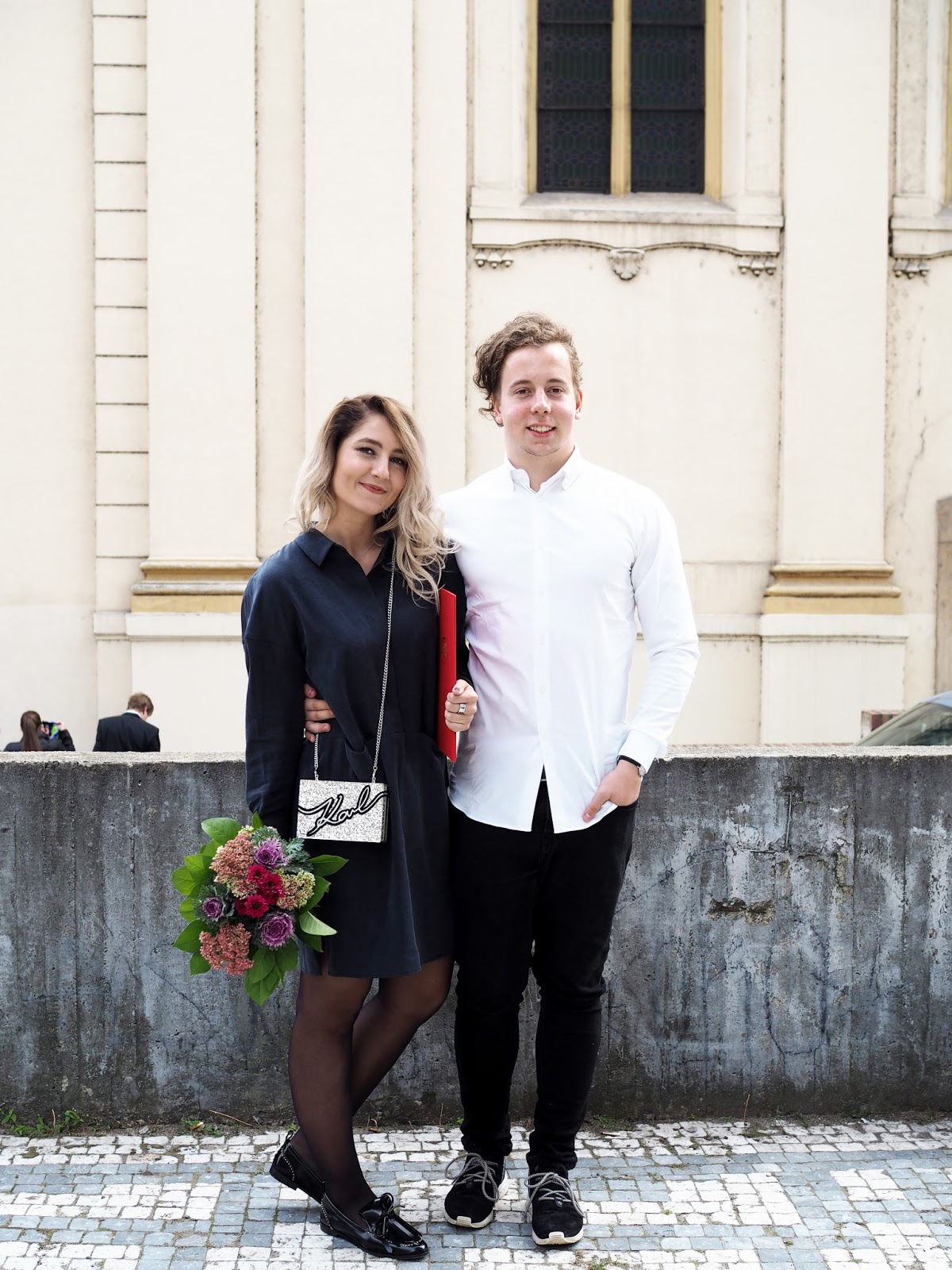 VymazatCo se týká outfitu, respektive bot – podpatky jsem samozřejmě mít chtěla, ale díky přetrženým vazům v koleni jsem byla ráda, že jsem zvládla jít bez berlí, takže placatý boty byly jedinou možnou volbou, proto jsem pak i šaty zvolila míň "šatový", aby to šlo hezky dohromady. 🙂