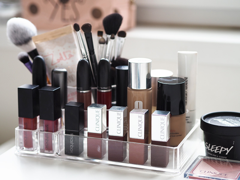 A na závěr ukázka mý “výstavky”, respektive nejpoužívanější (a nejhezčí, ehm) produkty, co se mi nechtěj schovávat do kosmetickýho stolku, ale mám je na něm takhle krásně vyrovnaný. A neříkejte mi, že to takhle nemáte taky!