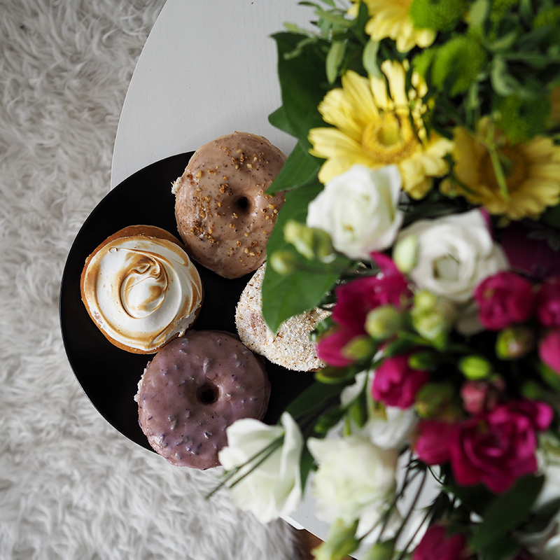 A tady už donáška pro nemocňáka. Aneb zatímco nekteří údajně po narkóze dva dny zvrací, já měla hned ráno chuť na donuty. Tak jsme se pro ně po cestě z nemocnice rovnou stavili. Prosim vás – ten citronovej s náplní je nejlepší na světě. A levandulovej hned za ním.