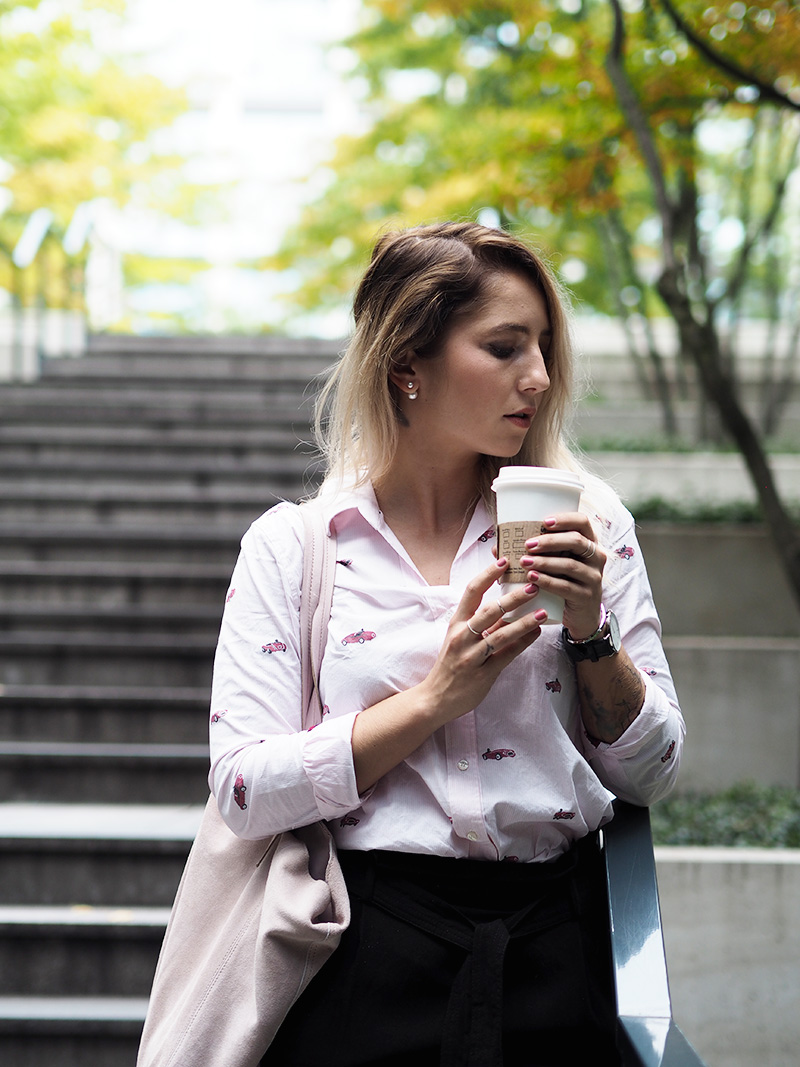 Víte, co bylo na prvních příčkách žebříčku těch nejhorších věcí na chození o berlích? Že si nemůžu po cestě do práce skočit pro kafe. Je to taková moje tradice a je jen málo dnů, kdy ji vynechám. Jakmile jsem teda měla nějakej doprovod nebo jakmile jsem byla ve stavu, když se zvládla pohybovat bez berlí, vedla moje cesta někam pro kafe. Vymstilo se mi to jen jednou, když jsem se smekla na schodech a vylila si ho doslova na hlavu – ale to vám povyprávim u outfitu, kterej ten nához schytal. Dnes vám povím o tom, proč jsem si zamilovala Esku, jakých akcí jsem se za poslední dobu zúčastnila a čím jsem léčila svoje (fyzický i psychický) bolístky.