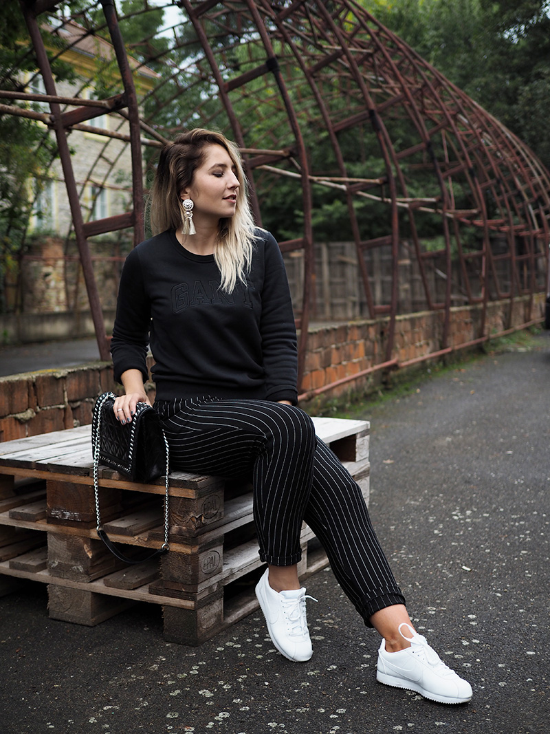 Ale teda fotogenický to tam je neskutečně a vzhledem k tomu, že to máme kousek od baráku, asi tam budem zajíždět častejc. V hlavní roli outfitu opět kabelka ze Zary, teplákový kalhoty ze Stradivaria, Gant mikina, náušnice z HM, který má už snad každá holka a běloučký Nike ťapky.