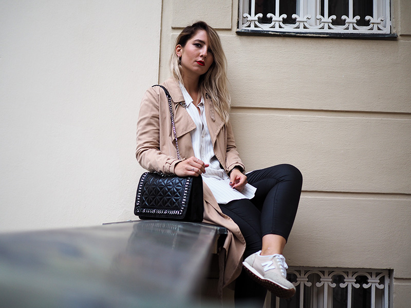 Období lehkých trenchcoatů opět trvalo asi tak dva dny. Ale vyvenčit ten svůj oblíbenej jsem stihla právě na tuhle akci. A s ním i novou dlouhou košili ze Zary, béžovo-červený New Balancky, který jsem strašně chtěla a který ne a ne rozchodit a kabelku, který jsem v zaře taky dlouho odolávala, ale od tý doby, co jsem jí koupila, tak nechci nic většího ani vidět – je to boží a najednou netahám 5 kilo zbytečností.