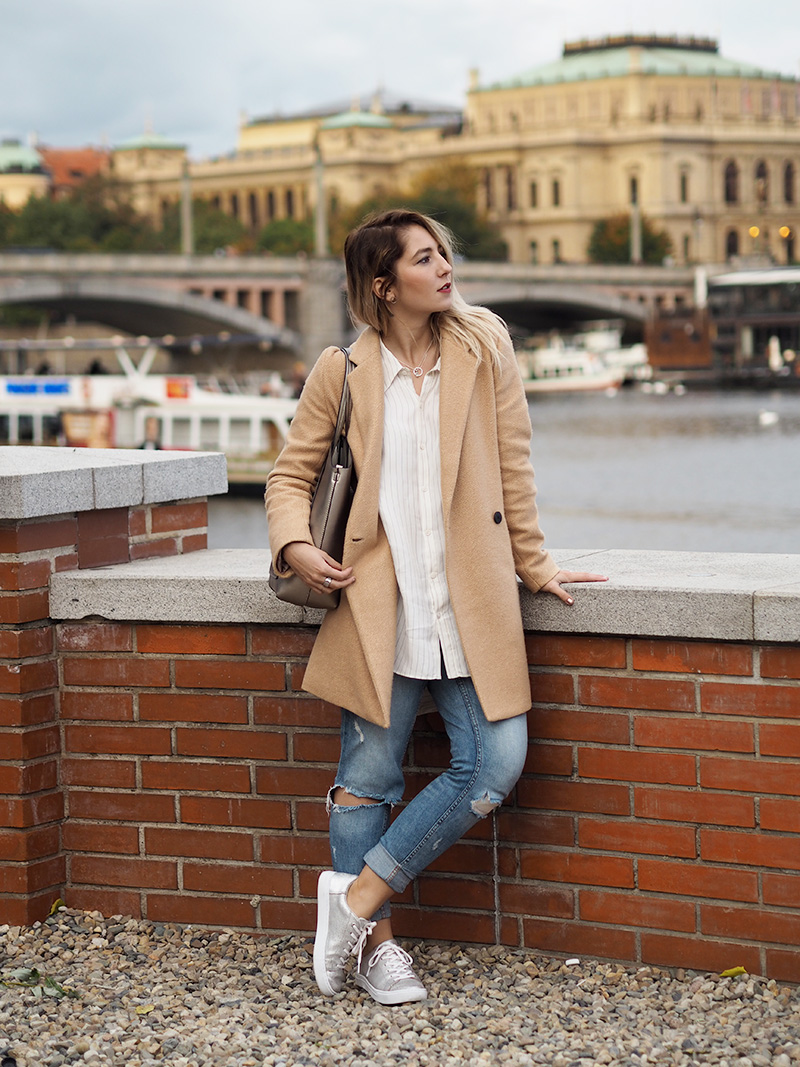 Období lehkých trenchcoatů opět trvalo asi tak dva dny. Ale vyvenčit ten svůj oblíbenej jsem stihla právě na tuhle akci. A s ním i novou dlouhou košili ze Zary, béžovo-červený New Balancky, který jsem strašně chtěla a který ne a ne rozchodit a kabelku, který jsem v zaře taky dlouho odolávala, ale od tý doby, co jsem jí koupila, tak nechci nic většího ani vidět – je to boží a najednou netahám 5 kilo zbytečností.