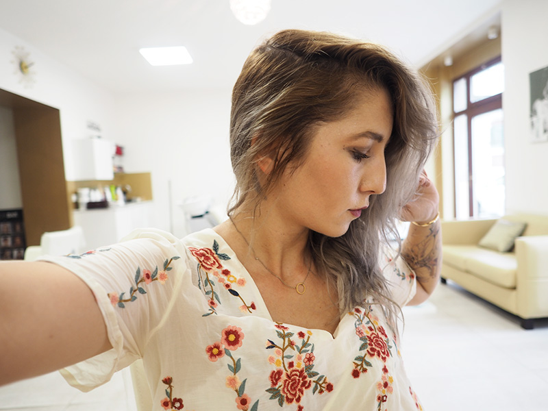 A aby to nebyly jen načančaný fotky ze salonu, vybrala jsem i pár běžných denních fotek někde venku, kde mám zrovna vlasy pár dní nový. Studená blond, tmavě šedá, světle šedá a zas studená blond. Toť můj prozatimní vývoj a dál to vidím zas na něco tmavšího – přece jen to k tomu ztmavení v zimě tak nějak víc láká.