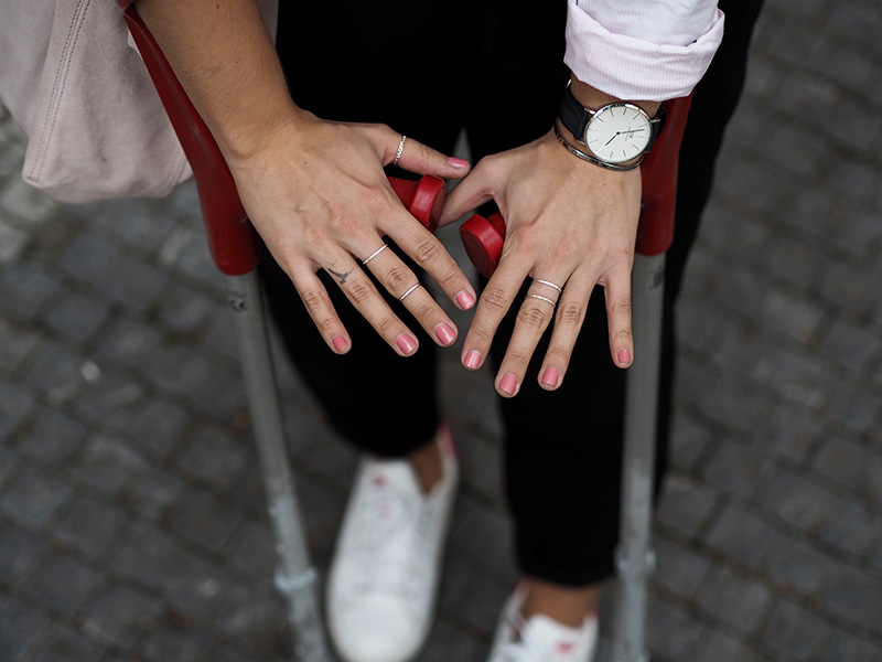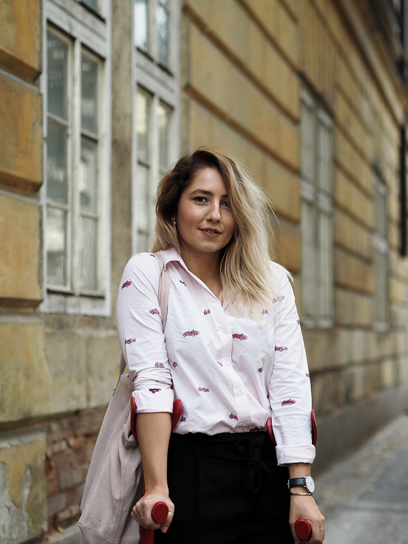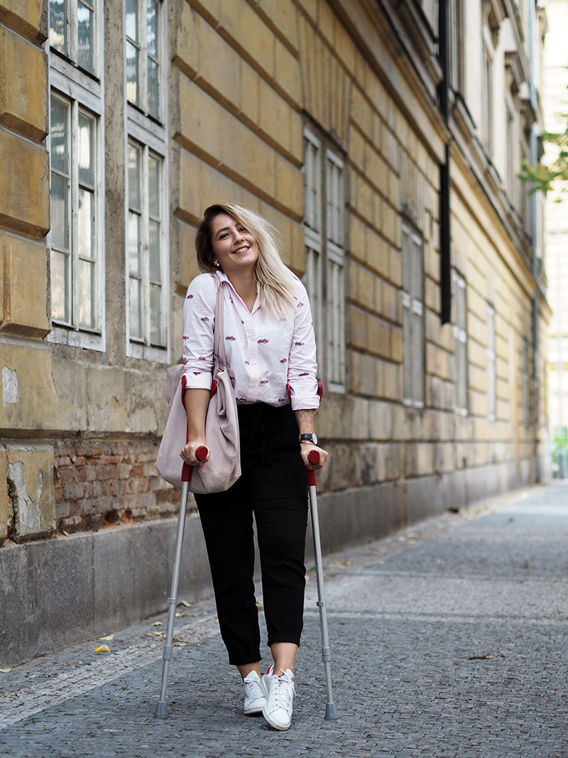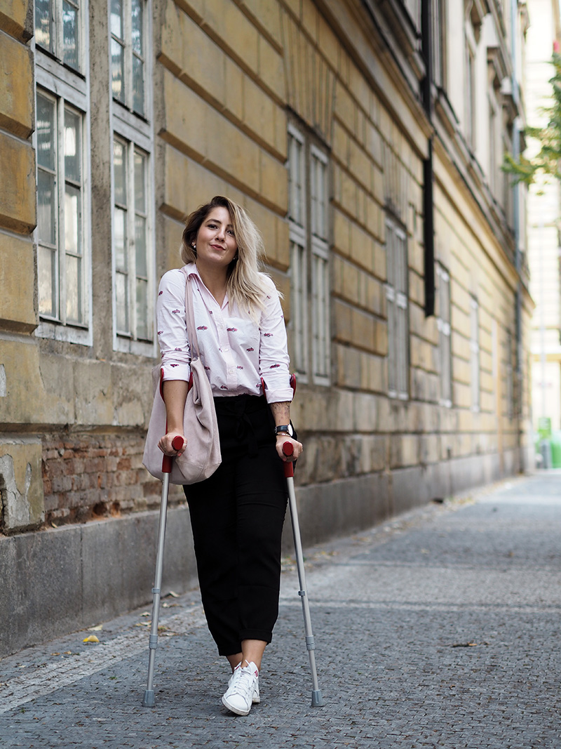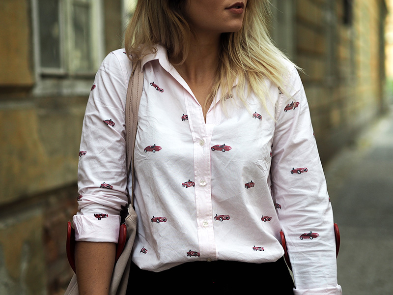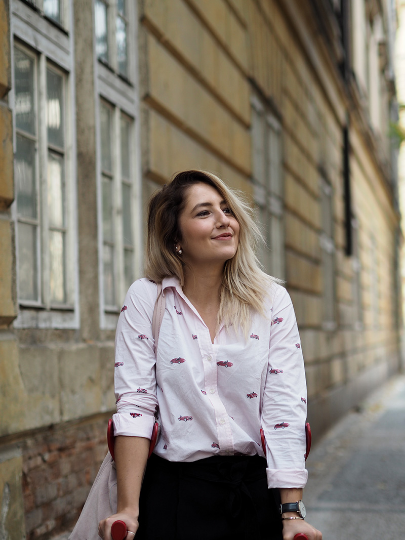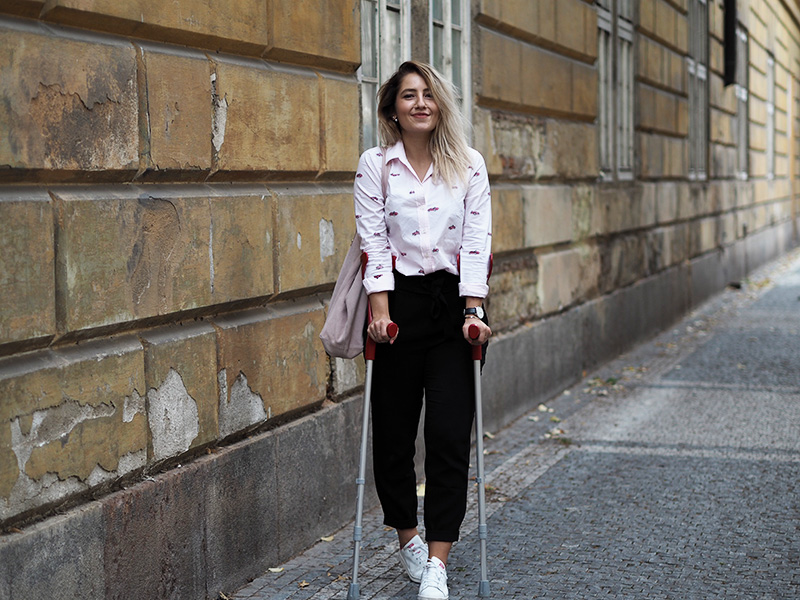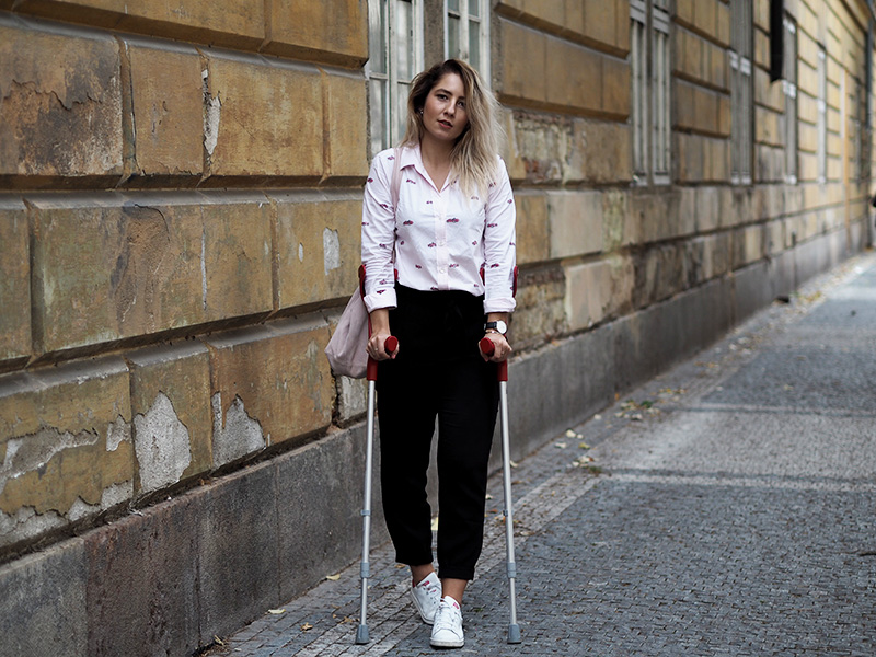 Košile – GANT / kalhoty – STRADIVARIUS / boty – ADIDAS / kabelka – ASOS / náušnice – PANDORA / prstýnky – H&M