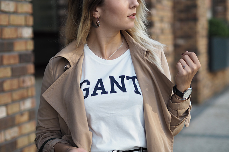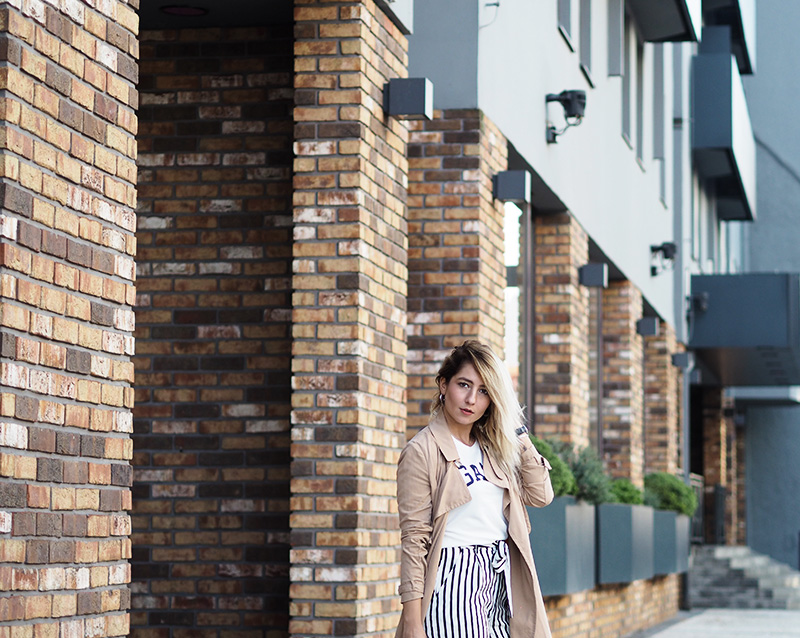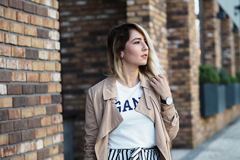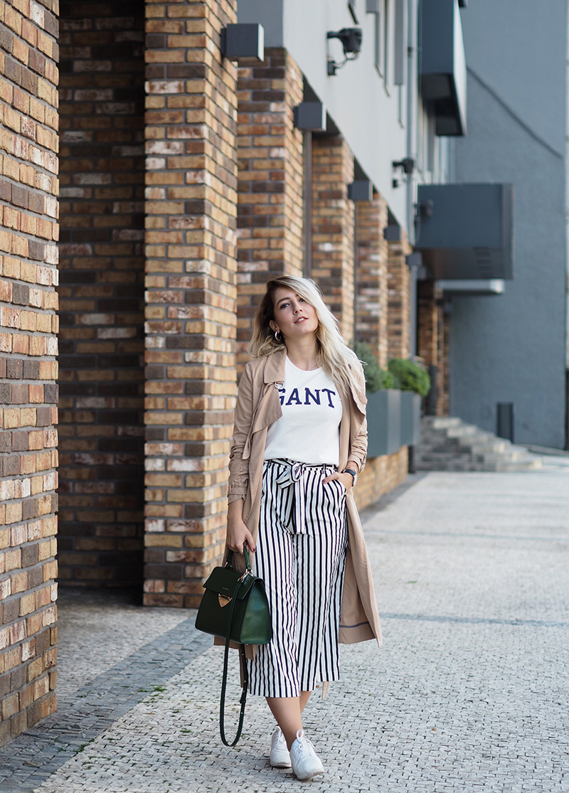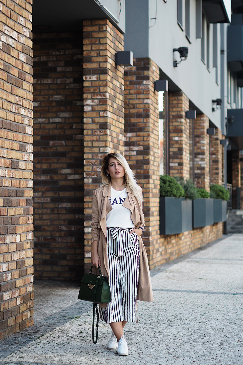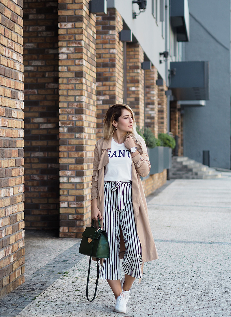 Trench – MANGO / culottes – ZARA / triko – GANT / kabelka – COCCINELLE / boty – NIKE