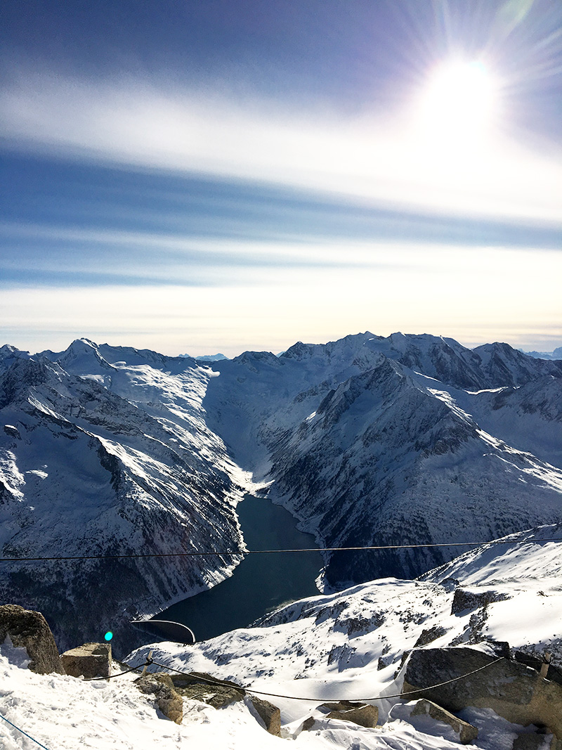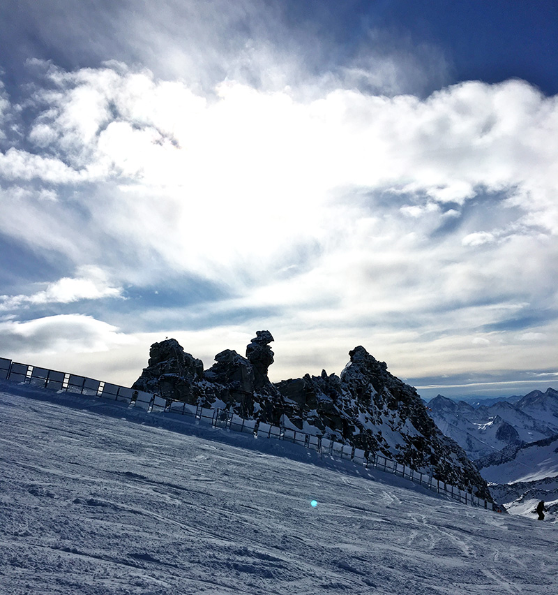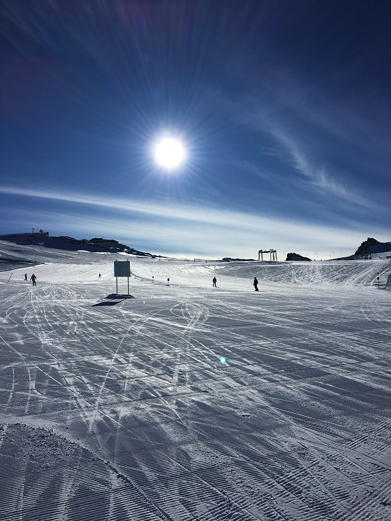 Takže v hotelu jsem nic nefotila a snažila se být co nejvíc nenápadná. Fotek ze svahu mám ale spoustu, přestože mi ty procenta baterky skákaly z devadesáti na dvacet během deseti sekund. Tak na to mrkněte, ledovec na Hintertuxu doporučuju, to poježdění z vrchu je něco úžasnýho. Když se k tomu navíc přidá ještě nekonečněj výhled na hory na všechny strany, je to naprosto dokonalý!